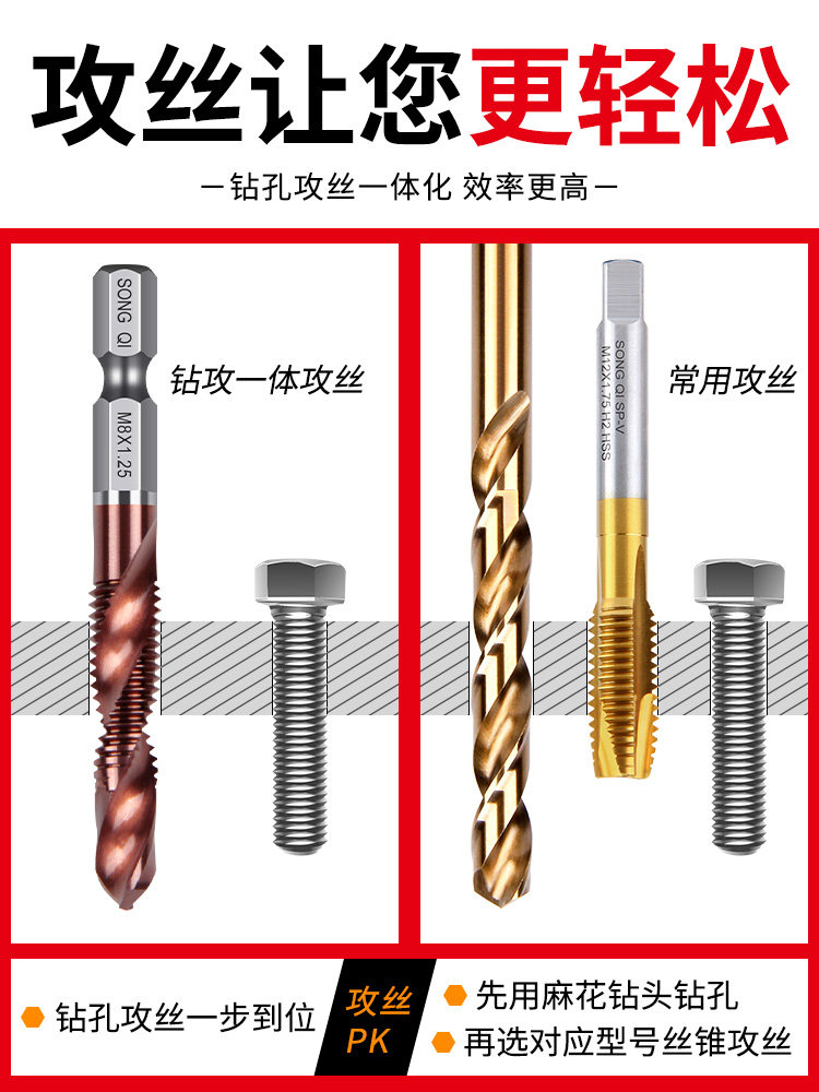 Бурение и перемешивание интегрированное три -в одном композиционном проволочном атаке Tavilless Drill Daquan Daquan Attack Tooth Self -Attack Vints Special M3