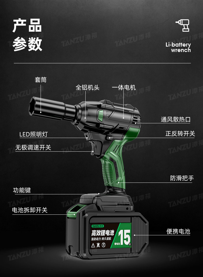 Бесколлекторный электрический гаечный ключ, литиевые батарейки, перчатки с зарядкой, полный комплект
