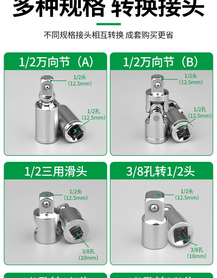 Конвертирующая головка рукава 1/21/43/8 Большие, средние, маленькие, маленькие и маленькие летающие вращающиеся стальные раны с пушкой, чтобы повернуть голову