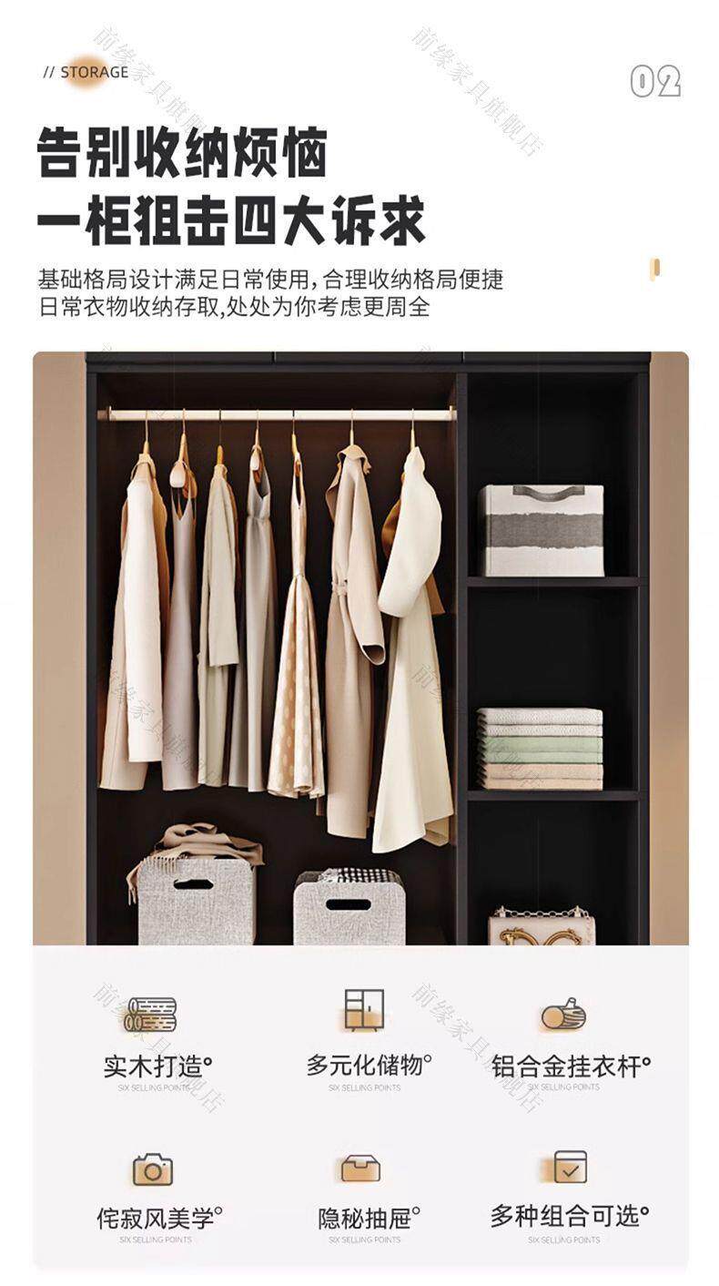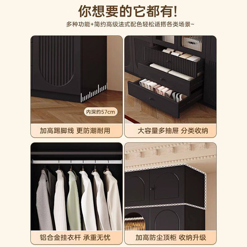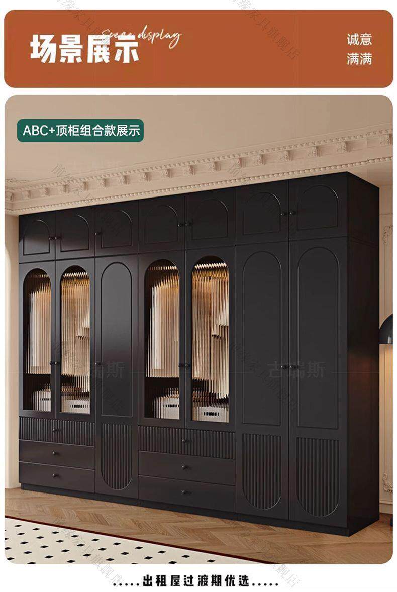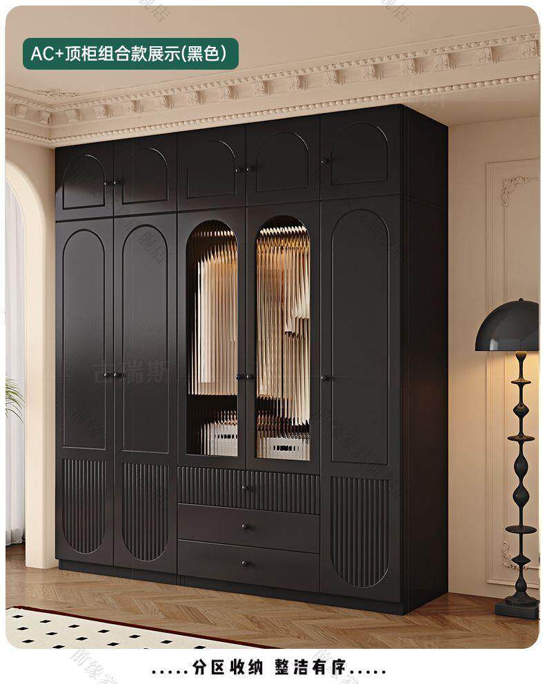 Американский твердый лес гардероб сплошной дерево домашняя спальня современная простая комбинированная шкаф французский ретро -новая черная одежда