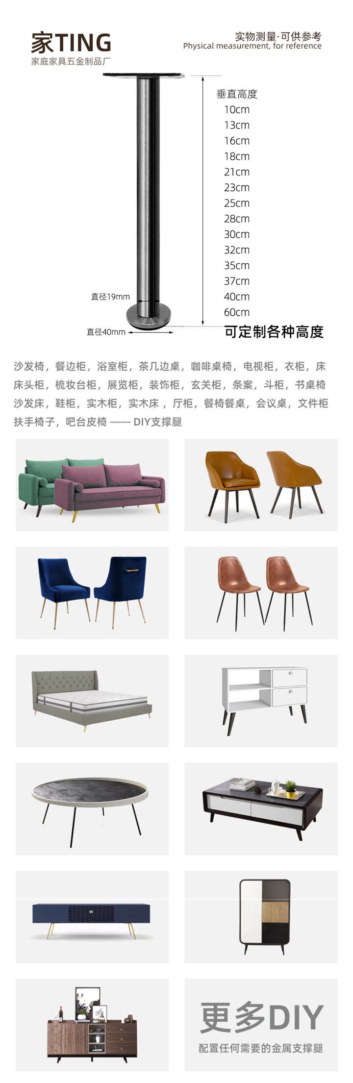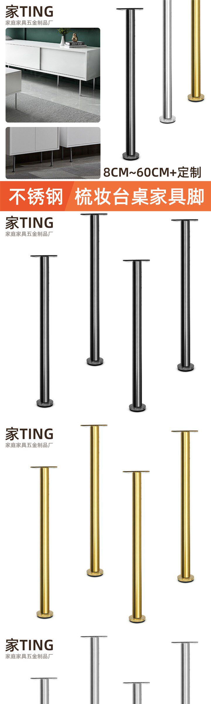 Легкая роскошная из нержавеющая сталь Круглая труба Регулировка ног может увеличить телевизионный шкаф, кофейный столик для ног, шкаф для ног в ванной комнате ноги шкаф