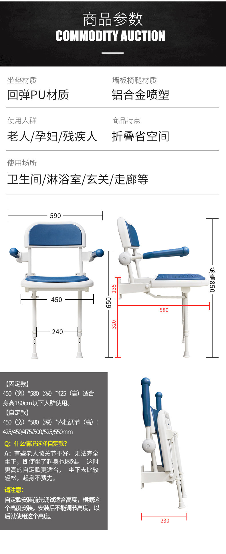 Специальный складной стул складного табурета пожилого табурета с ногами с подлокотником для душа табурета настенный стул настенный стул