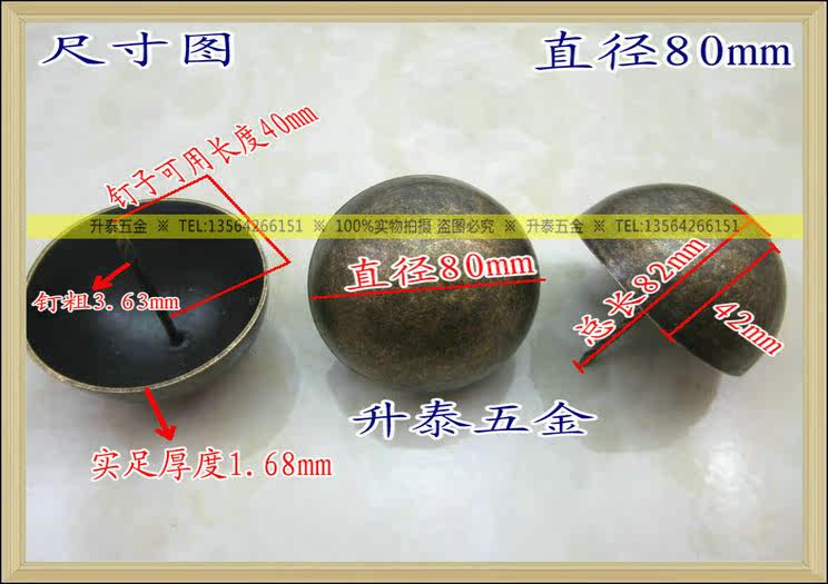 Китайские антикварные ворота Чистый медный диаметр 80 мм грибные гвозди/круглая шляпа с жирной барабанной ноготь/полусферическая круглая головка медная гвоздь.