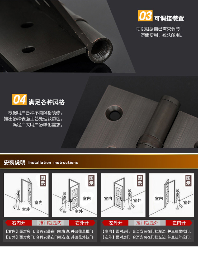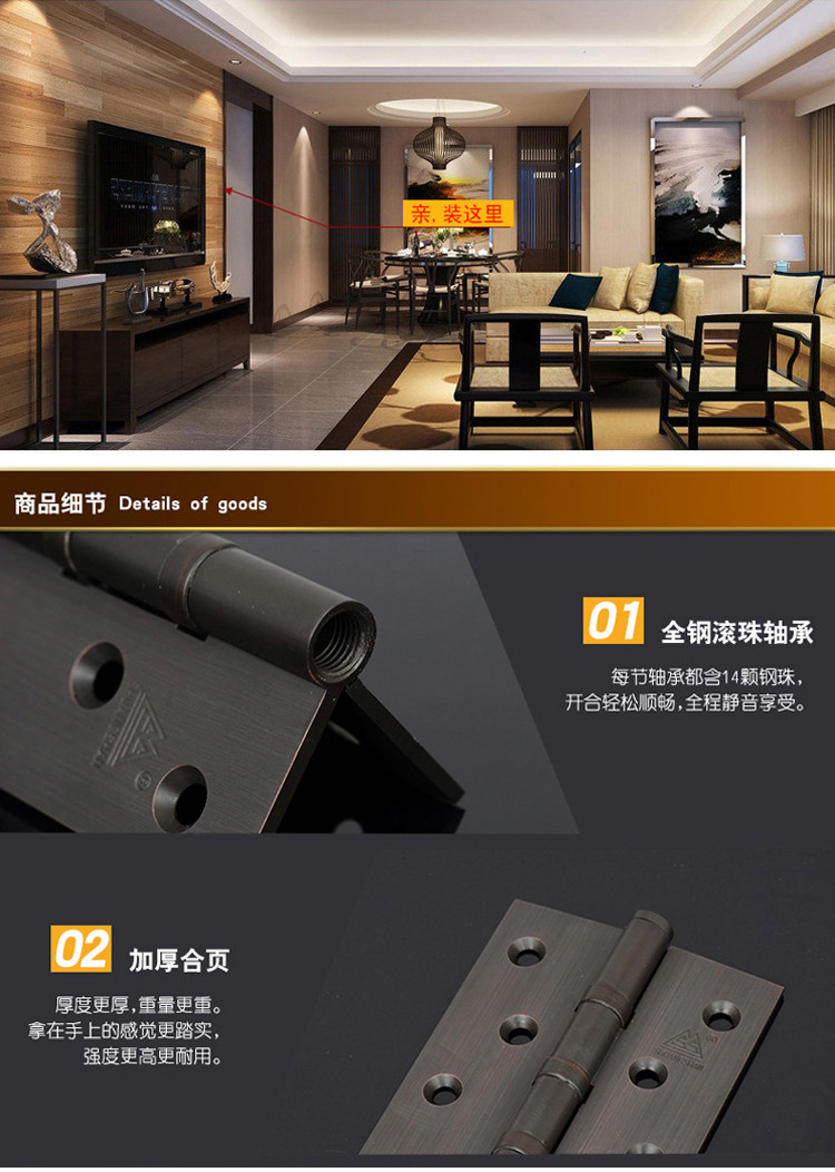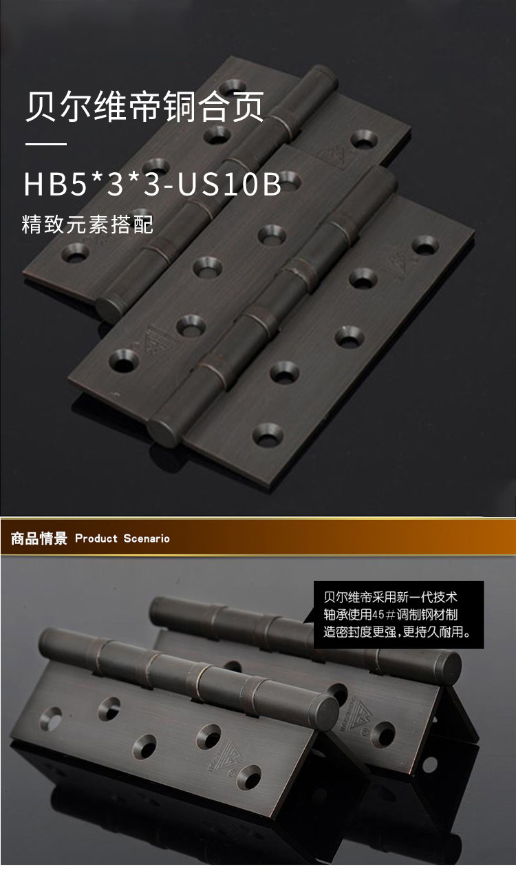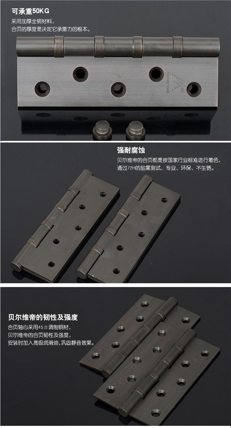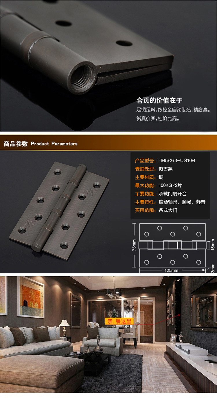 Антикварный складной подшипник для спальни, медный шарнир, 5 дюймов, 3.0mm, увеличенная толщина