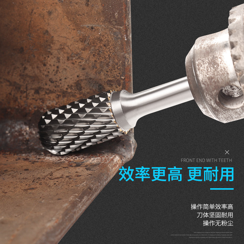 Поворотная головка из твердосплавного сплава, шлифовальная головка из вольфрамовой стали с двойной канавкой, цилиндрическая гравировка, электрическая фреза, шлифовальная головка по металлу