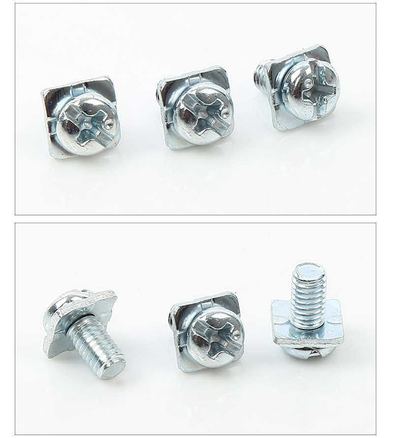 Готовый запас эластичной шайбы с квадратной подушечкой, три комбинации винтов с крестообразной головкой 5X12, закалка, термоусадочный стержень с оцинкованной поверхностью.