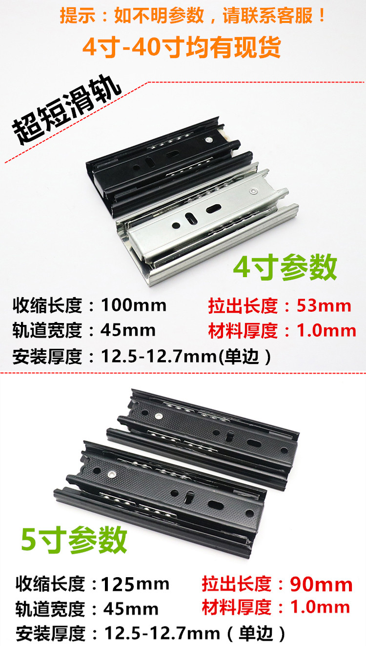 Ультракороткая трехсекционная бесшумная шариковая направляющая направляющая для ящика шкафа 4 дюйма, 5 дюймов, 6 дюймов, 8 дюймов, направляющая для небольшого ящика, тройная направляющая