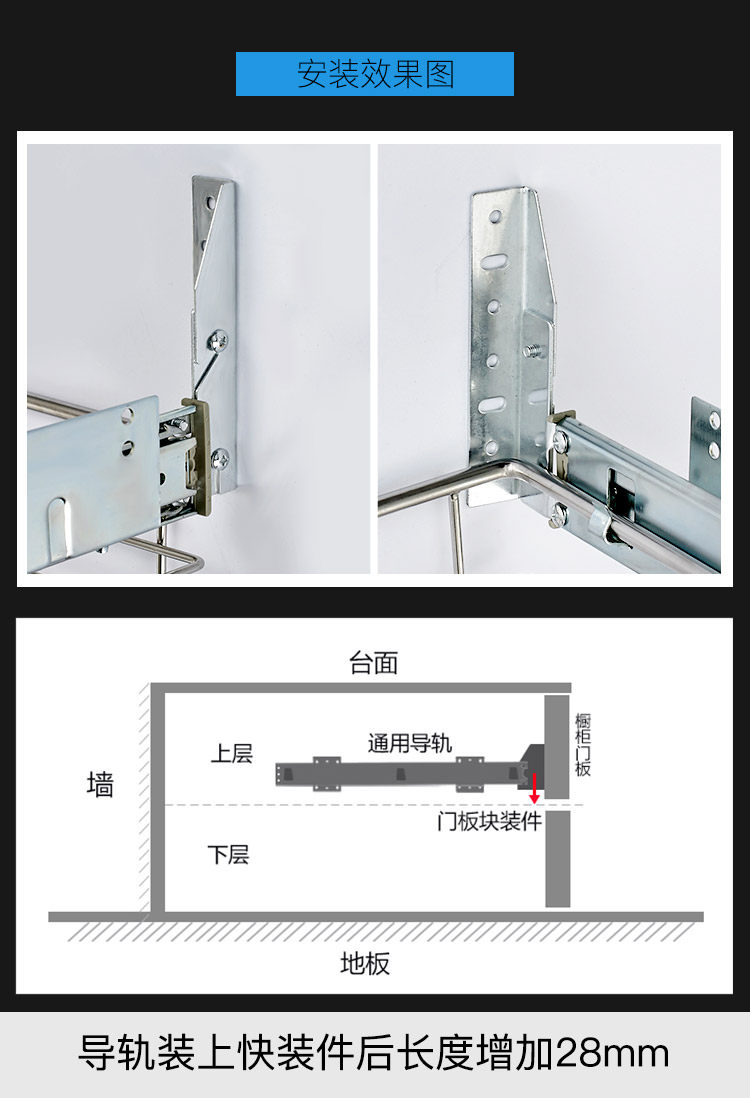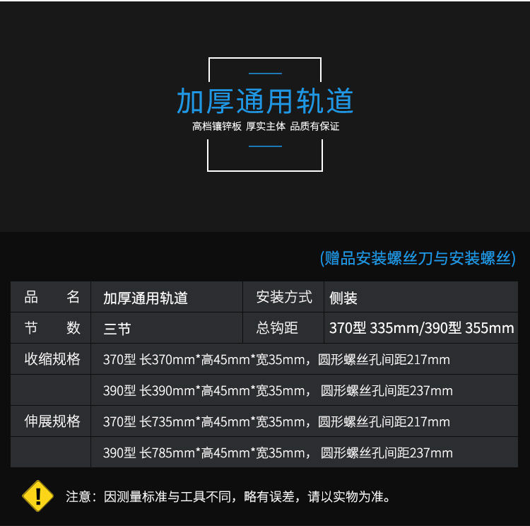 На этом треке есть канадская роллерная орбита и универсальная роллерная орбита(Другие магазины называются утолщенной или усиленной орбитой)Блюда могут быть универсальными.Толщина рельса может быть отрегулирована (регулируемый прицел показан в таблице ниже),Универсальная толщина дорожки фиксируется при 35 мм не может быть отрегулирована, Другие параметры одинаковыСущностьПримечание: толщина здесь относится к размеру стены шкафа в сторону корзины.