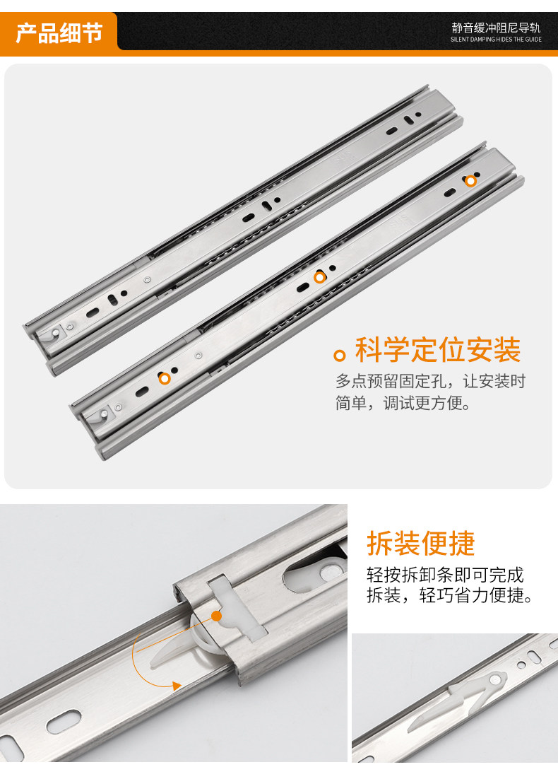 Руководство ящика из нержавеющей стали Руководство Три секции бесшумного демпфирующего буфера орбита компьютерная таблица клавиатура Клавиатура Гидравлическое слайд -рельс