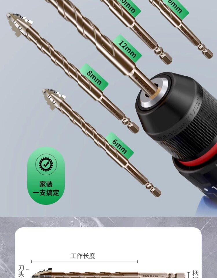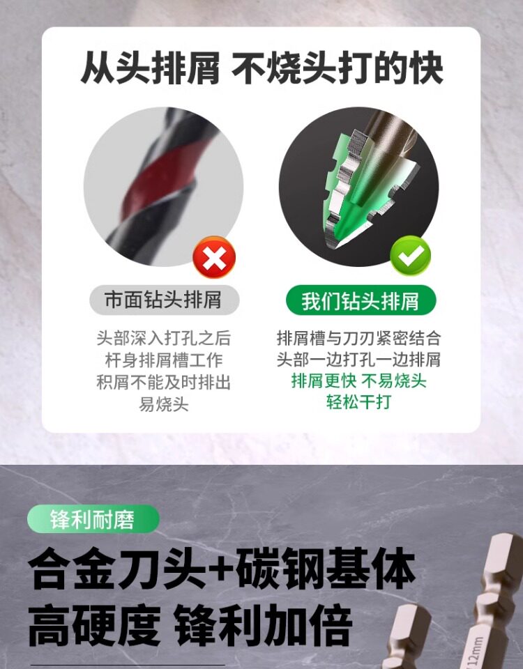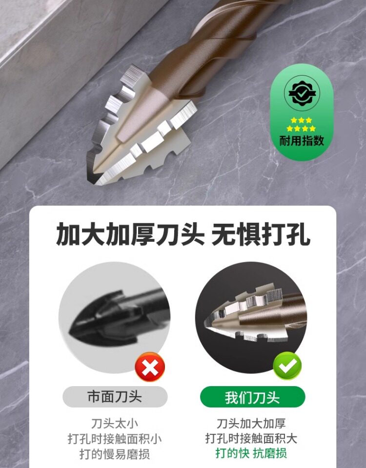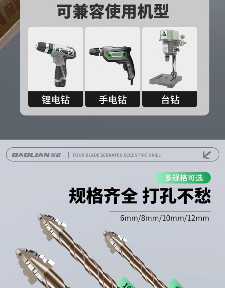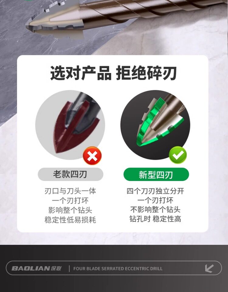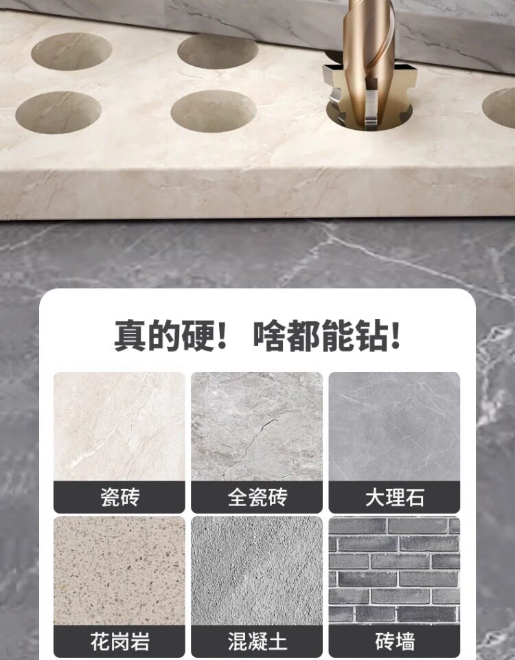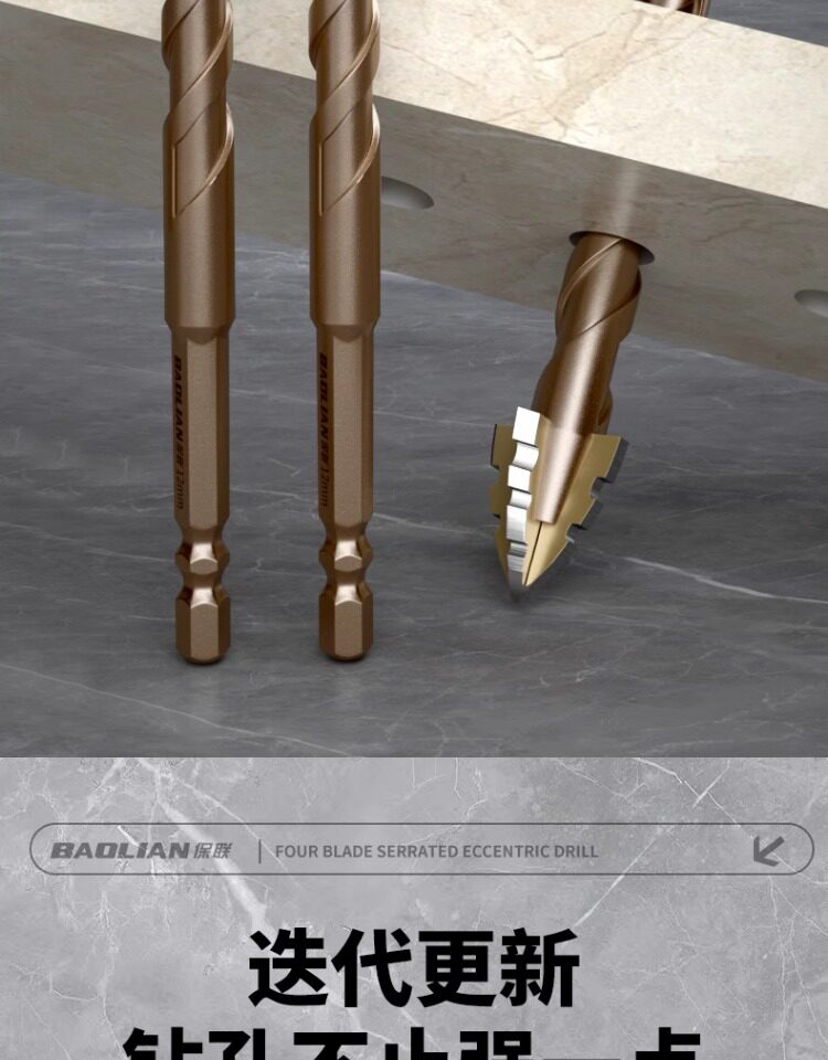 Четырехстороннее зубчатое эксцентриковое сверло, цельнокерамическая плитка, чугун, бетон, шестигранное сверло, артефакт сухого сверления