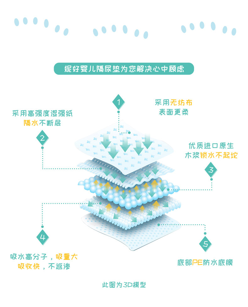 妮好 Детская одноразовая водонепроницаемая дышащая пеленка, простыня для новорожденных