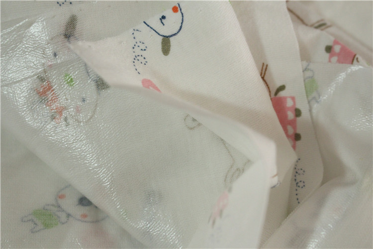Водонепроницаемая, дышащая и дышащая физиологическая ткань из полиуретана для внешней торговли может использоваться в качестве водонепроницаемой ткани для детского нижнего белья, водонепроницаемой ткани для трусов для осмотра беременных, водонепроницаемой махровой ткани для подгузников, водонепроницаемой дышащей и дышащей физиологической ткани, сверхтонкой трикотажной водонепроницаемой ткани, водонепроницаемой ткани для детских салфеток для слюны, водонепроницаемой физиологической ткани, хлопчатобумажной трикотажной водонепроницаемой ткани и т. д. Продукт не содержит формалин и соответствует национальному стандарту GB18401-2010A и японскому стандарту тестирования JIS.