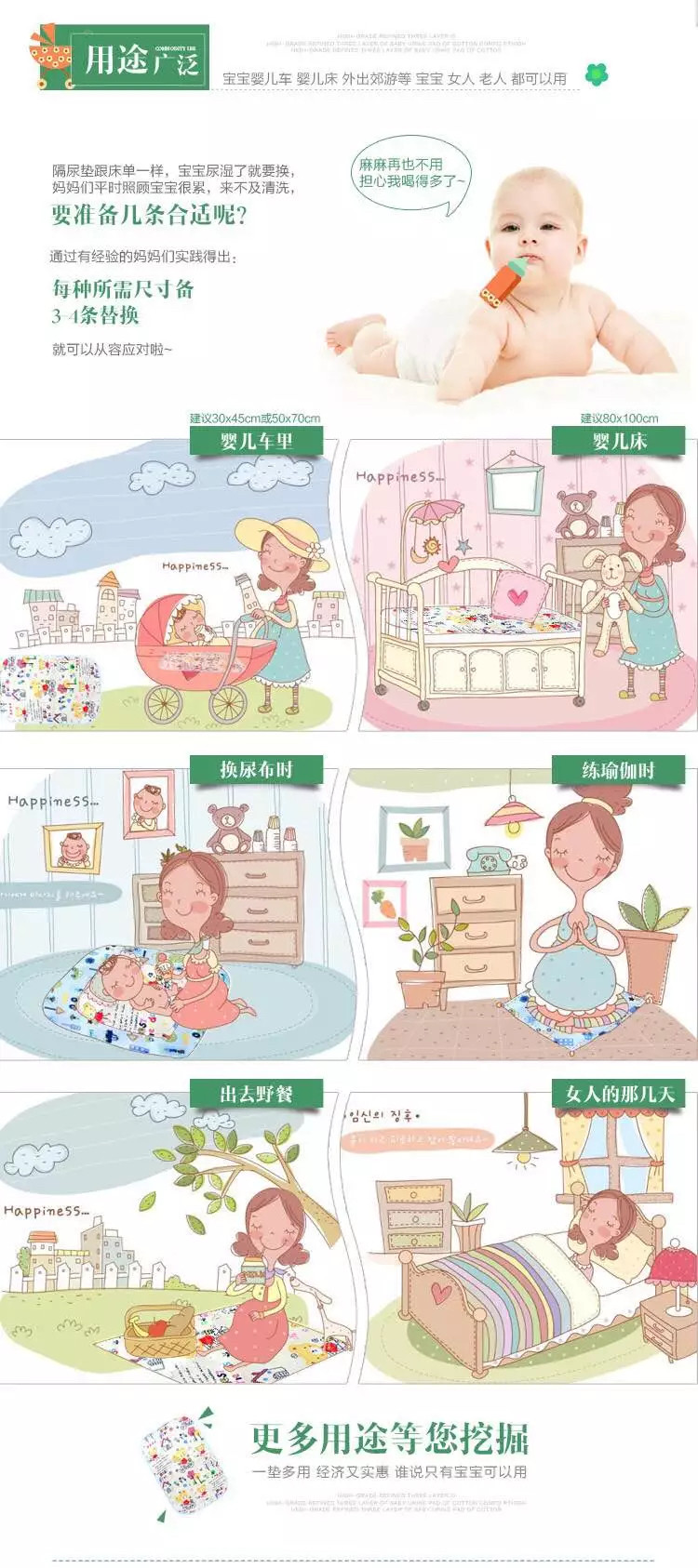 Детский хлопковый водонепроницаемый коврик для новорожденных, простыня