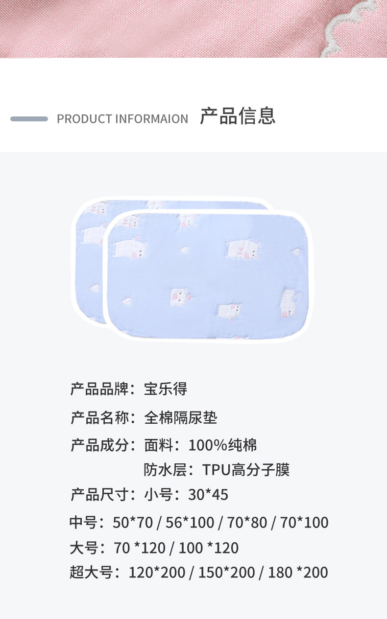 宝乐得 Хлопковая детская водонепроницаемая большая дышащая простыня, можно стирать, 1.8м