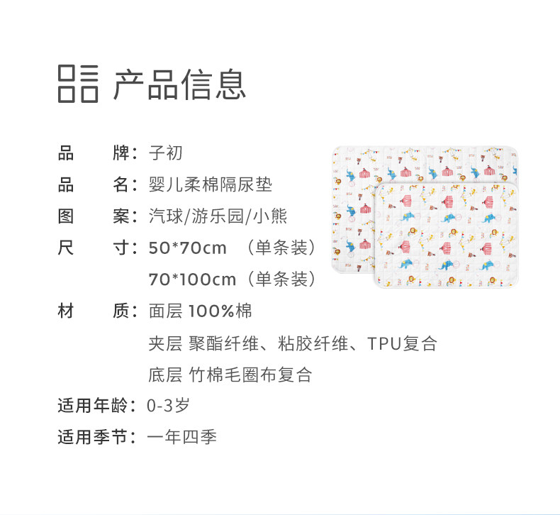 子初 Детская водонепроницаемая двусторонная дышащая простыня для новорожденных, можно стирать