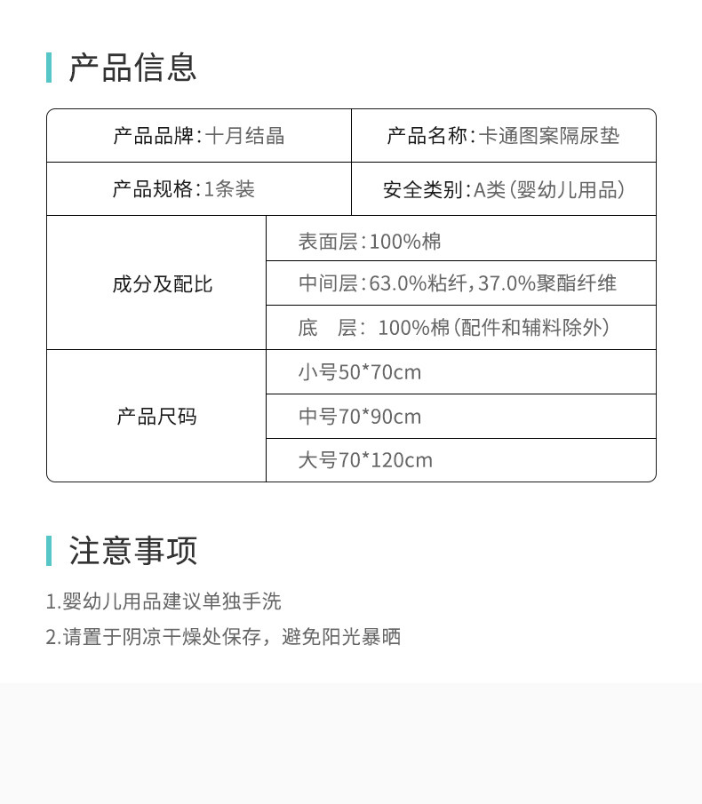 十月结晶 Детская нескользящая большая водонепроницаемая дышащая простыня для новорожденных, матрас, можно стирать