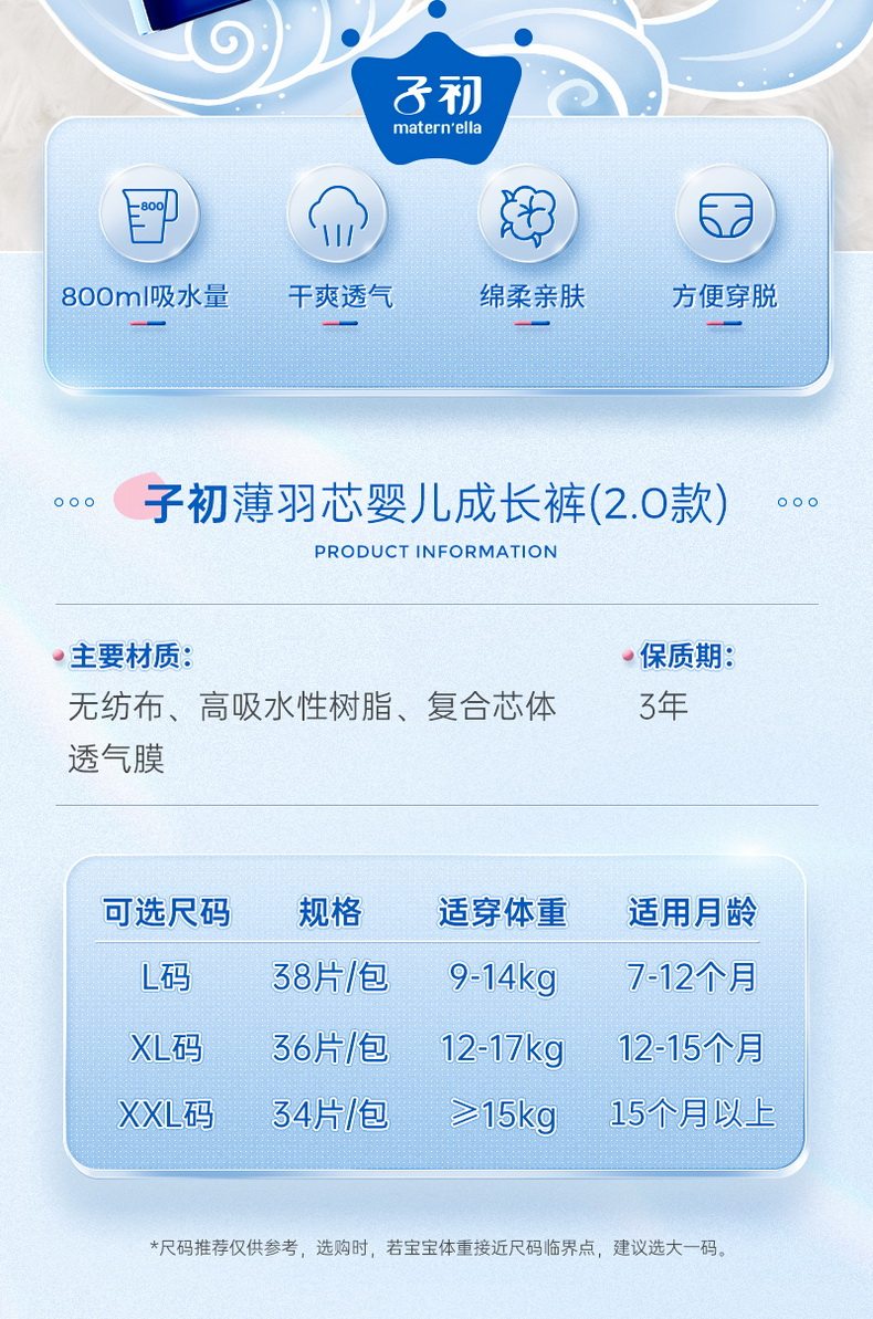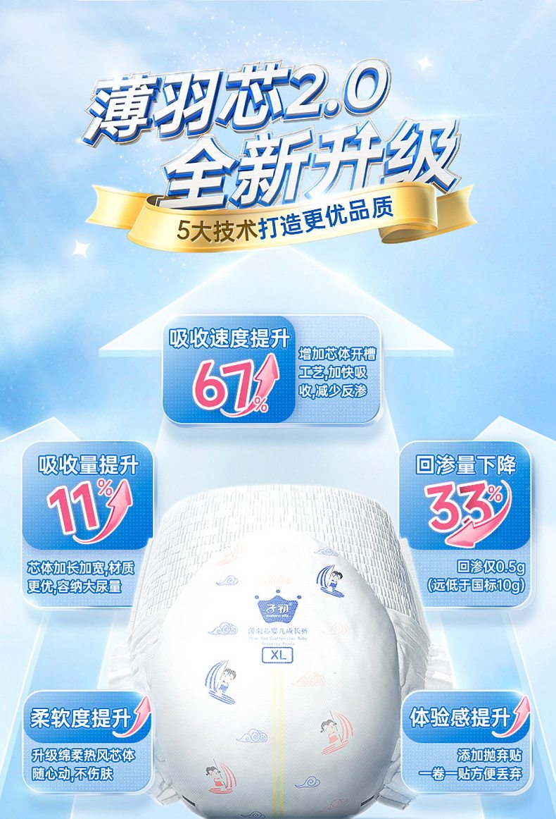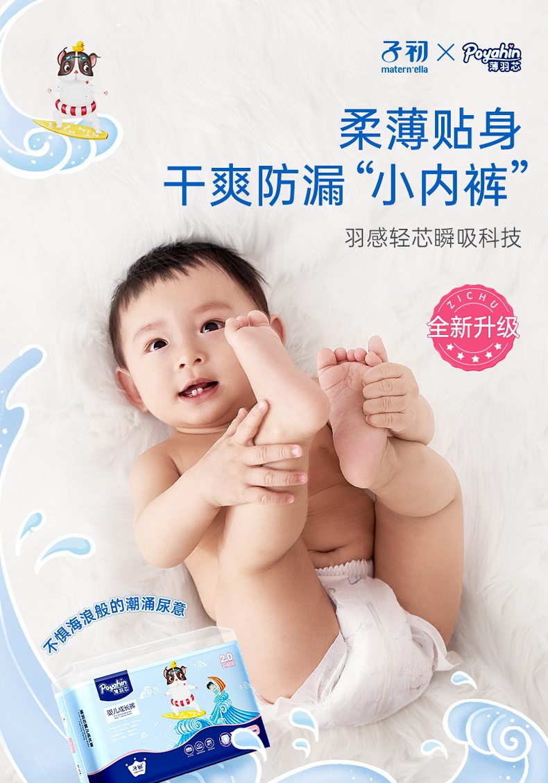 子初 Bo Yu Core модернизированная версия подгузников брюк, облачные мягкие перегородки мочи испытательной одежды наряды наряды