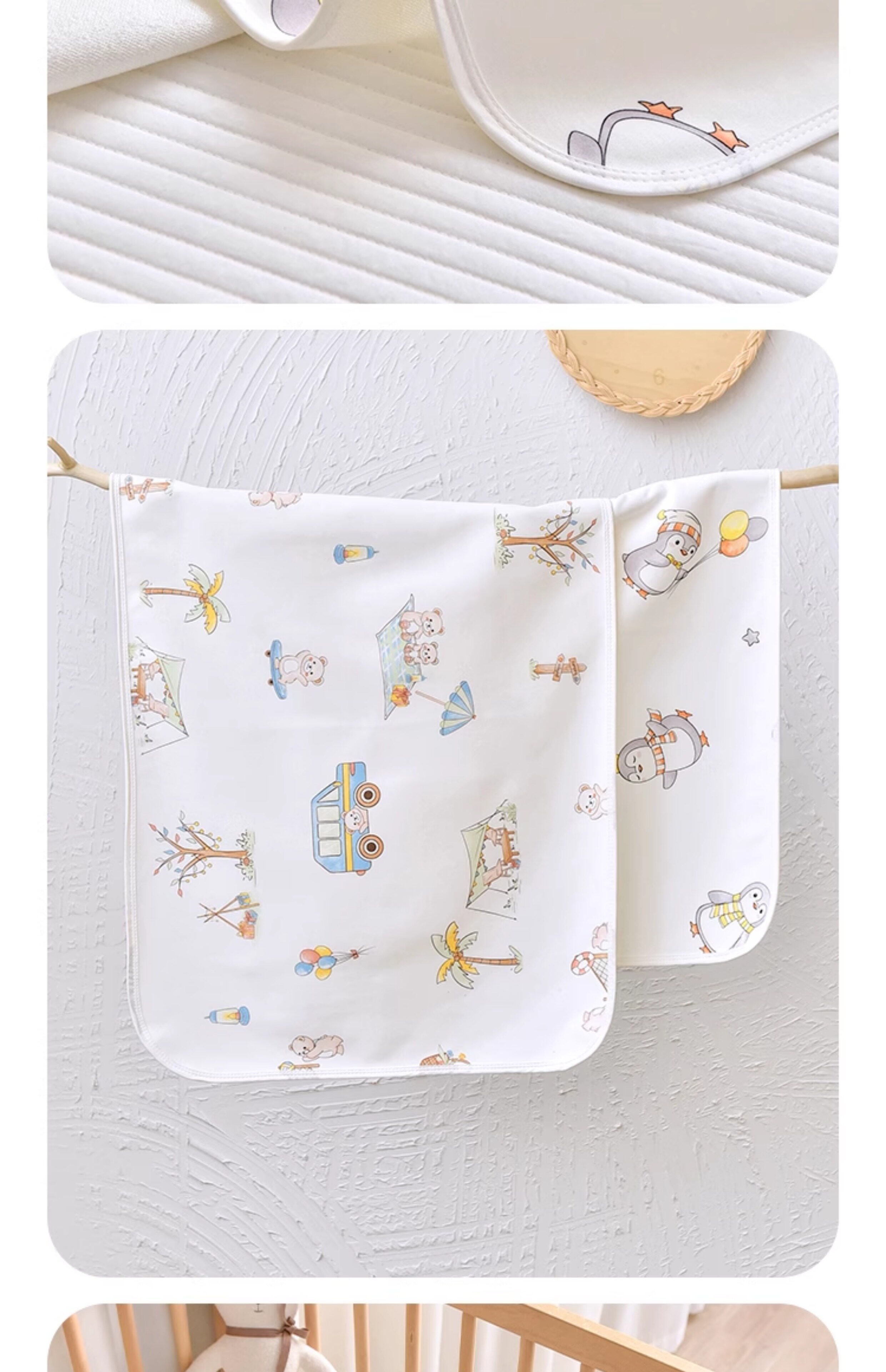 Можно использовать в кроватках, подгузниках, тележках и т. Д.