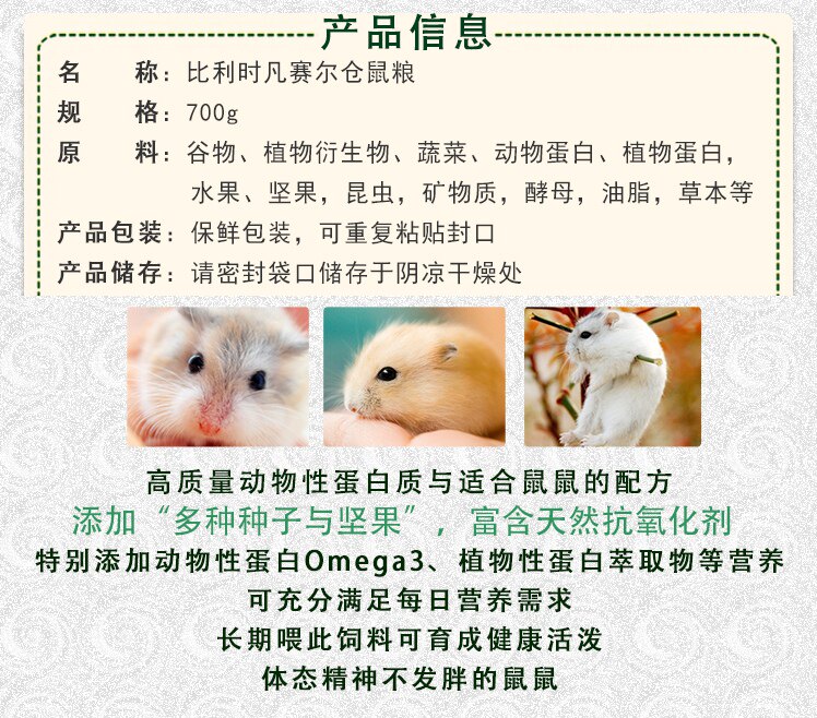 Платчик бельгийский Verser Gold Silk Bear Bear Grain Dwarf Hemster Grain Grain Feer Feer Green Food 700G