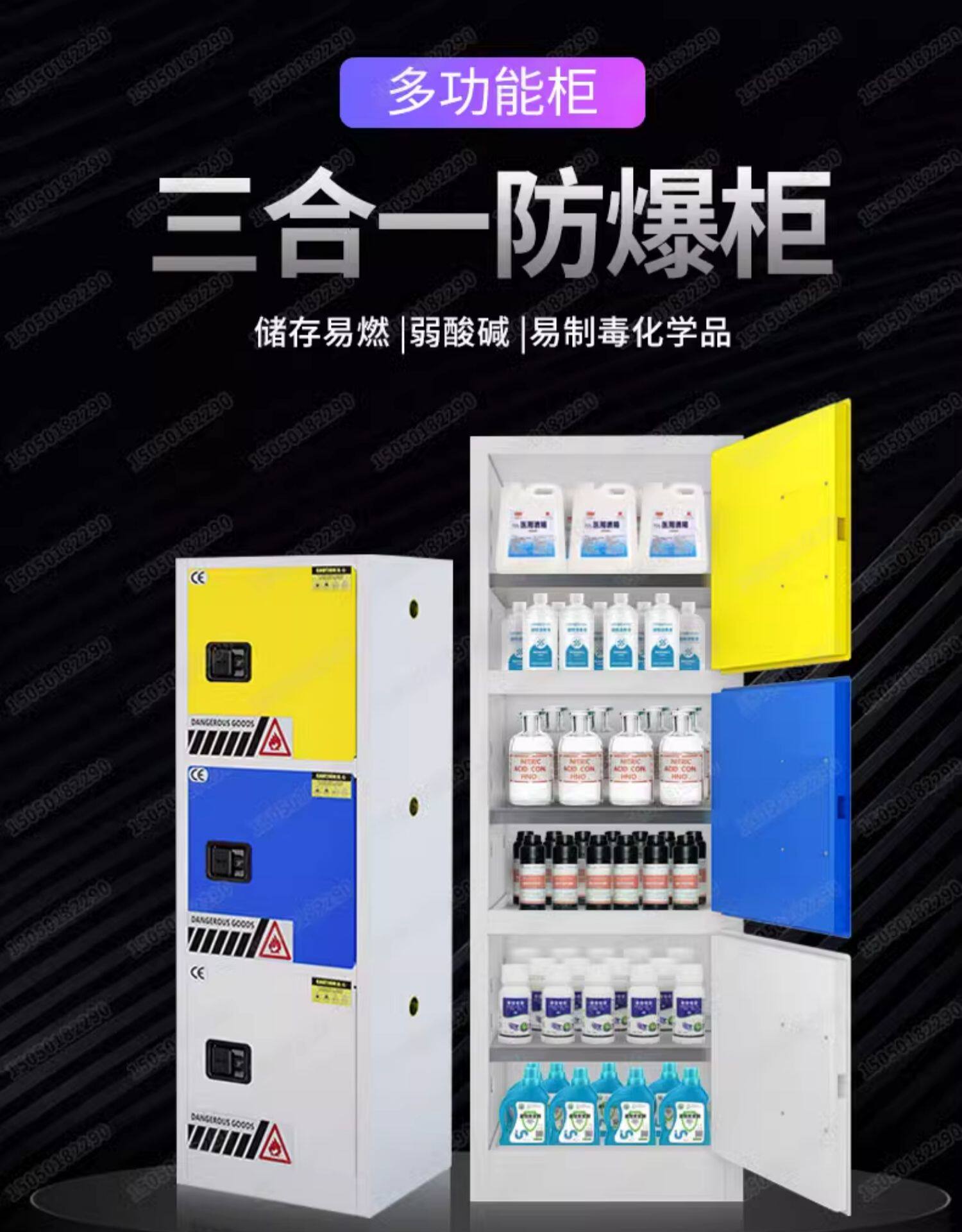 Три -в одном защитном шкафу антиэксплузионное шкаф многофункциональный кислотный реагент реагент Химический отравление лекарственным препаратом Опасное химическое хранение шкаф
