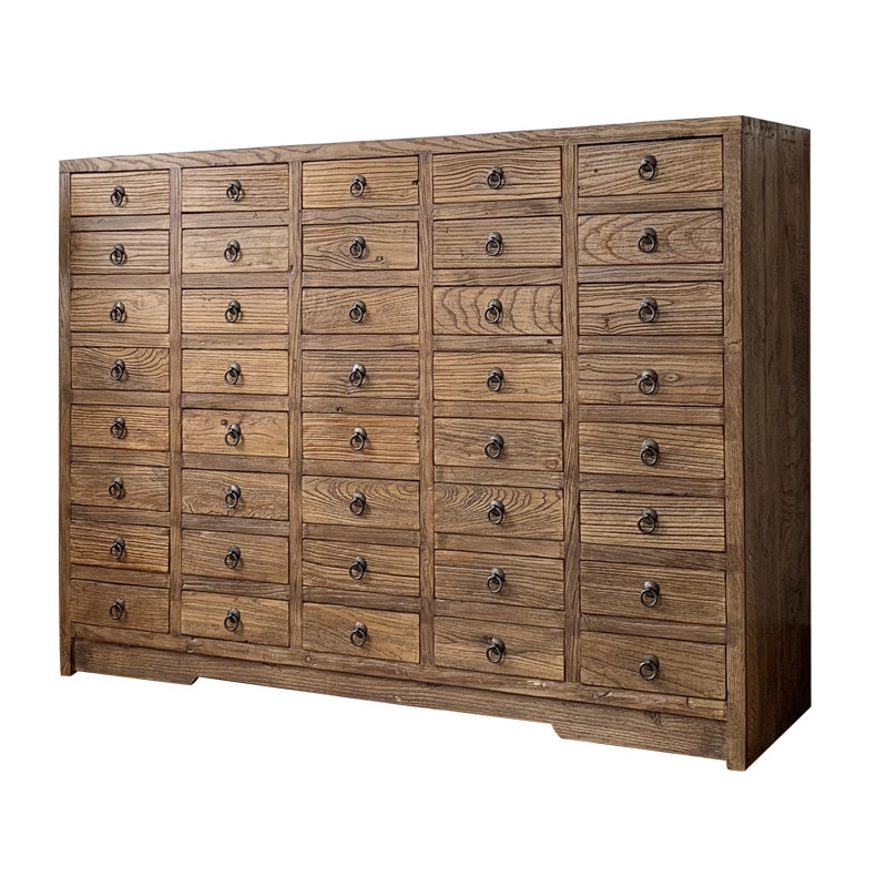 Старый введение традиционная китайская медицина шкаф 40 -зарегистрированное рисование Классическая китайская лекарственная витрина выветрившаяся старая дверная панель Сплошная древесина