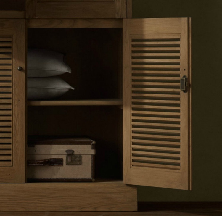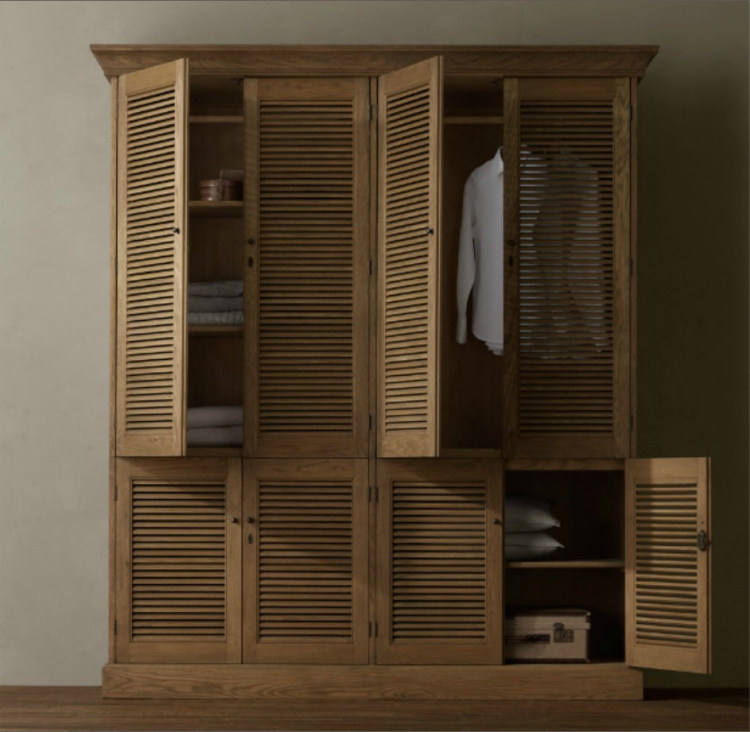 Американский Rh, оригинальная одиночная французская деревенская ретро бревенчатая мебель, четырехдверный шкаф с жалюзи в сборе, шкаф для хранения из американского дуба
