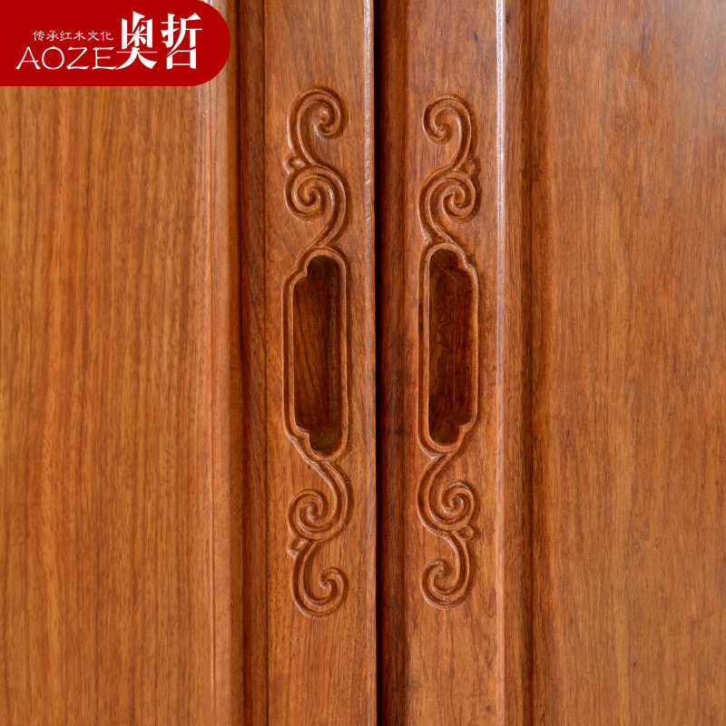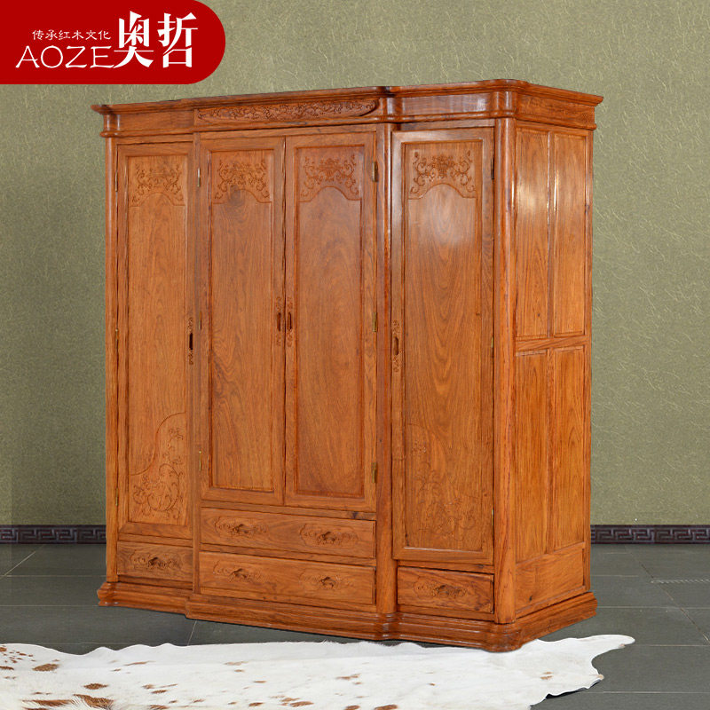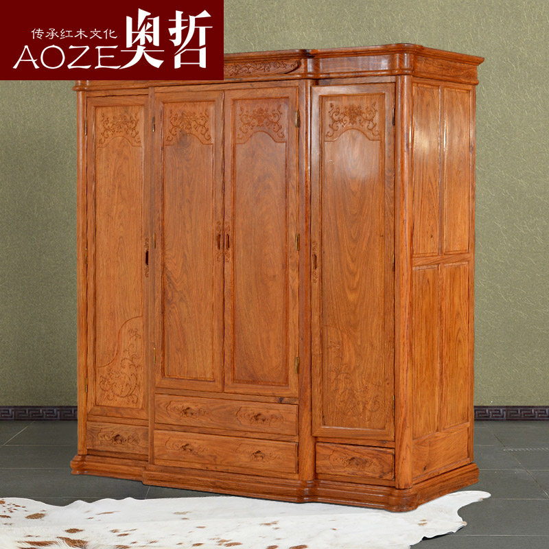 奥哲 Шкаф из красного дерева, четырехдверный шкаф из палисандра в китайском стиле, большая вместимость, мебель для спальни из цельного дерева A-G18