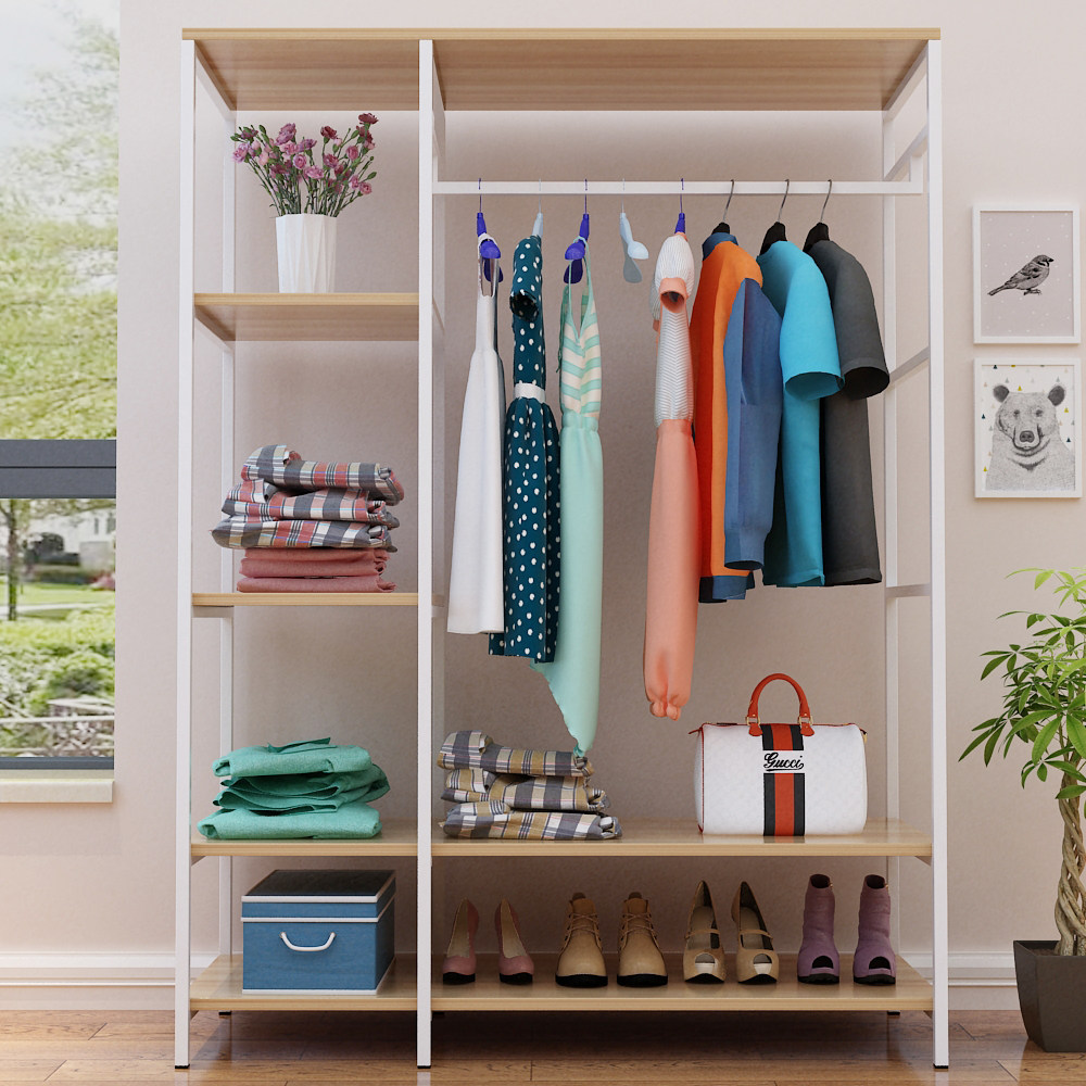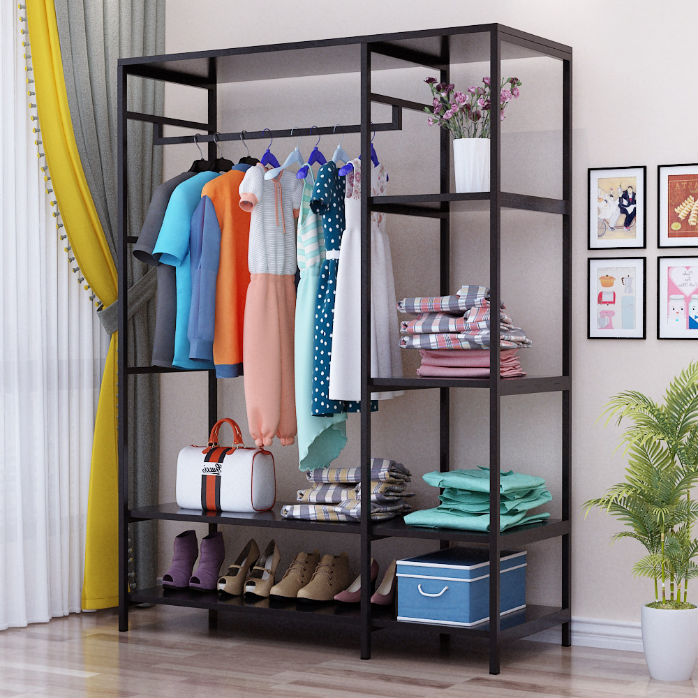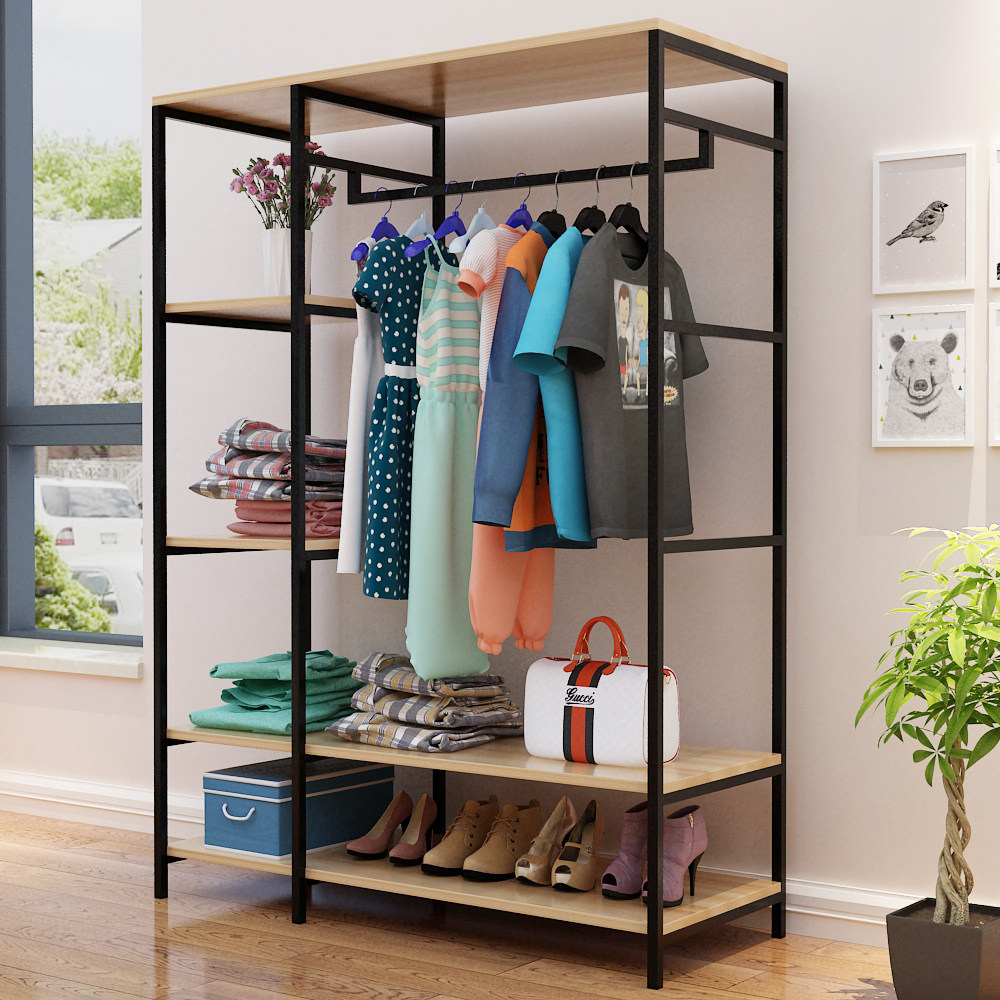 Домашняя стойка для хранения простая посадочная крышка рама железной спальня подвесная вешалка с твердым деревом гардероб детей висеть в одежде полка