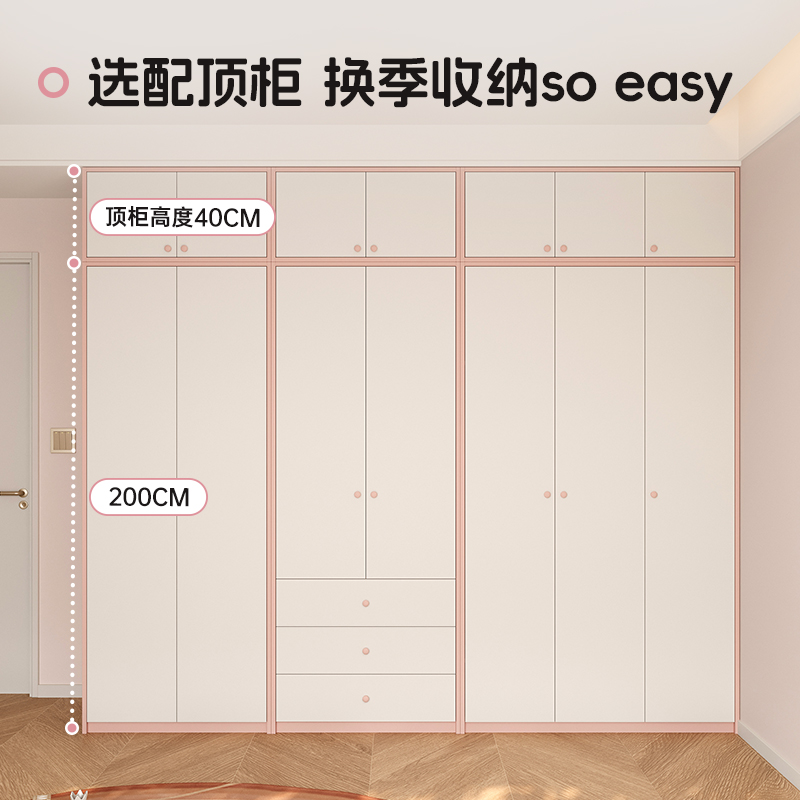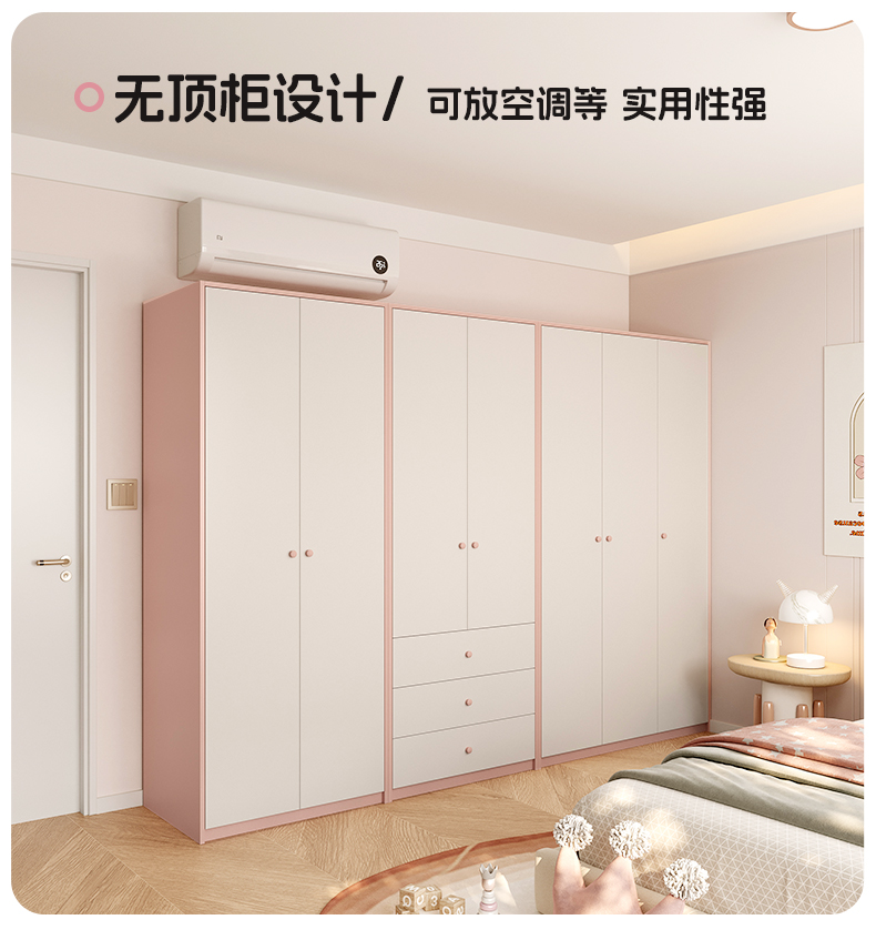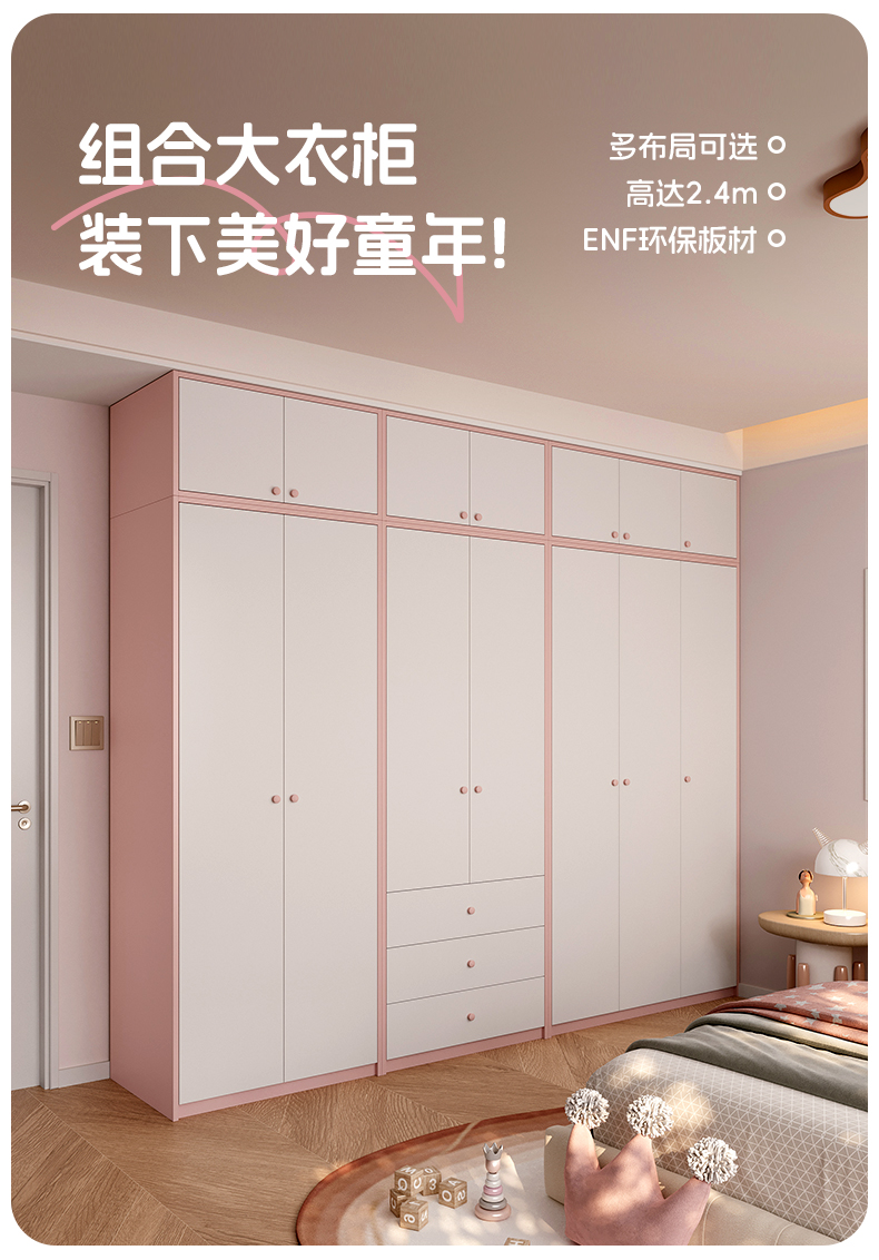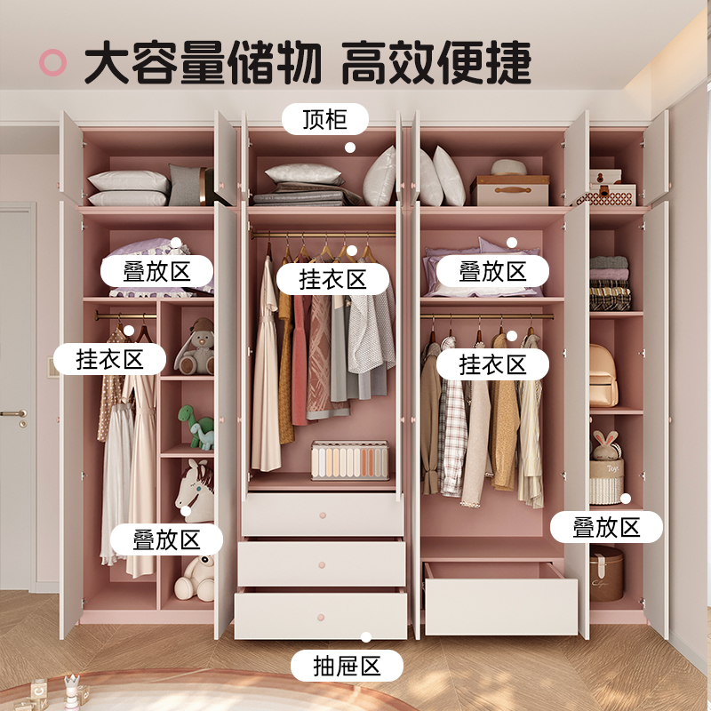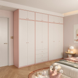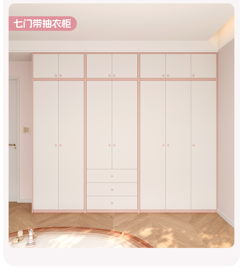 Детская комната, гардероб, спальня, дом для девочек, розовая стена до верха, шкаф для хранения из массива дерева, плоский проем, настройка двери