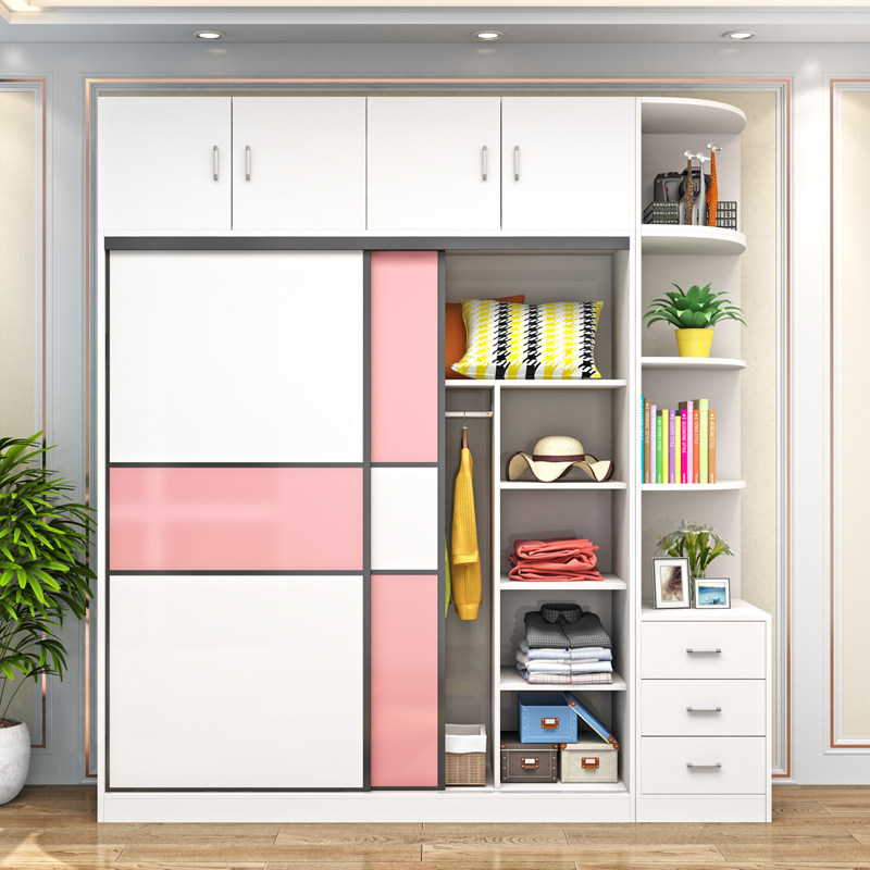 Гардероб раздвижной дверь современный минималистский твердый древесина Домашняя спальня Дверная дверь экономика шкаф