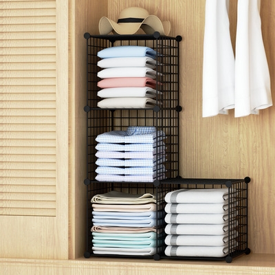 Гардероб слоистые железные сетчатые артефакты одежда установлена полки.