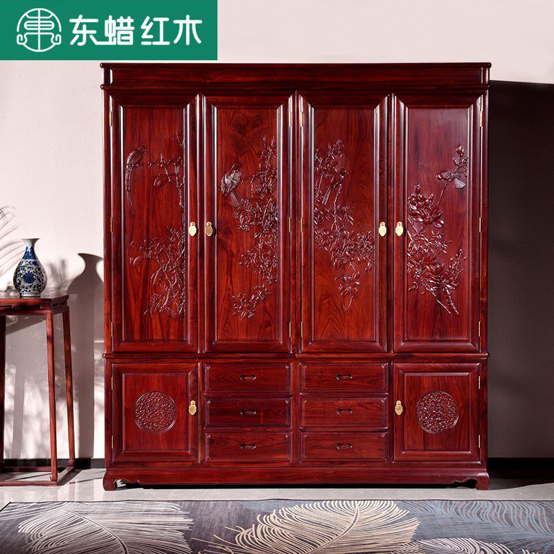 Легкий роскошный национальный лейбл спальня из красного дерева новая китайская мебель из красного дерева. Пушистый рассвет четырехпрочный шкаф для гардероба в больших спальнях