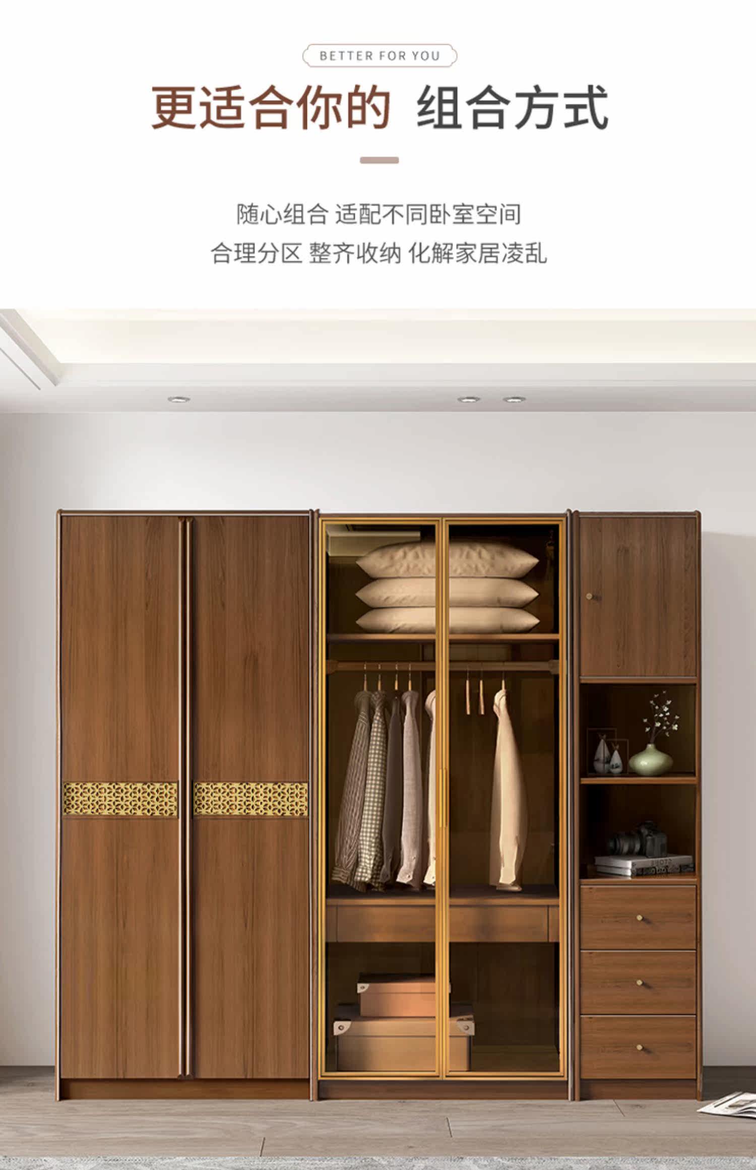 天坛 Твердый древесный шкаф домашний спальня простой новый китайский шкаф для хранения орех