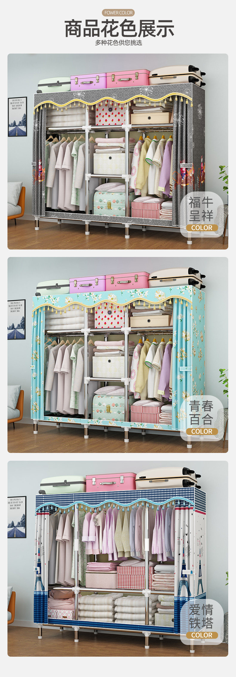 Простые тканевые домики для аренды гардероба, толстая, толстая, прочная, прочная стальная конструкция, простая и легкая в сборке экономики