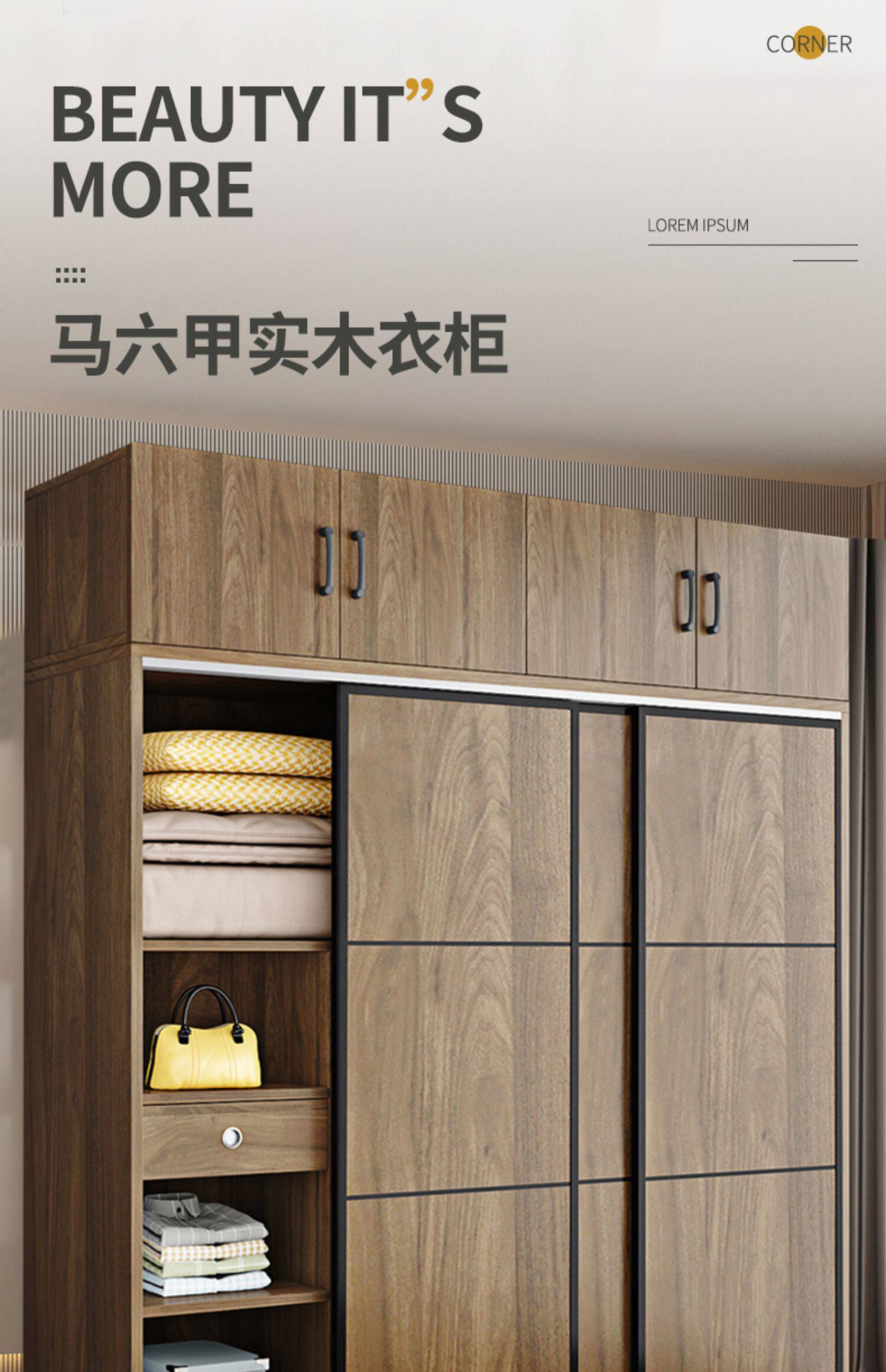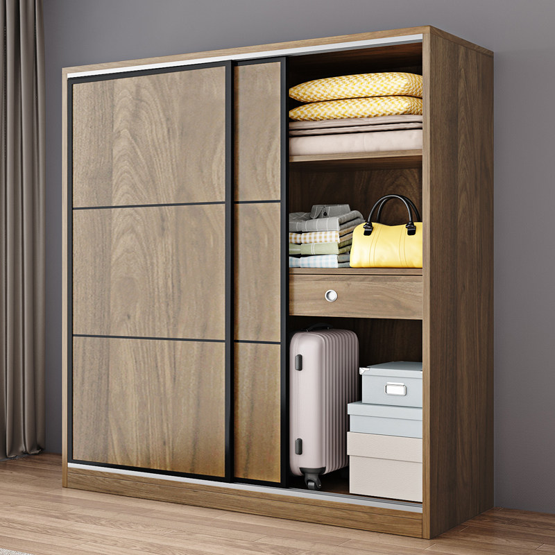 Протолкнуть дверь гардероба дома, настоящий деревянный шкаф дома, современный минималистский домик аренды, контейнер для хранения простого гардероба
