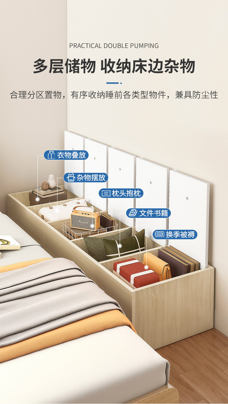 Простой кроватный шкаф с длинной полосой боковой кровать для хранения шкафа.