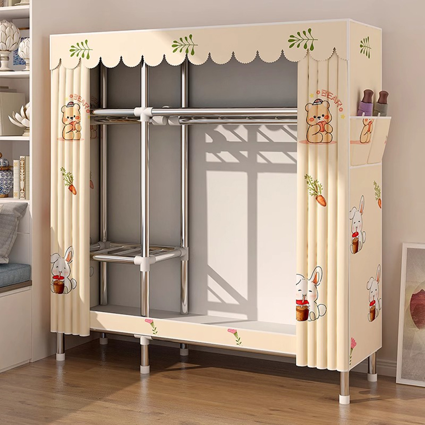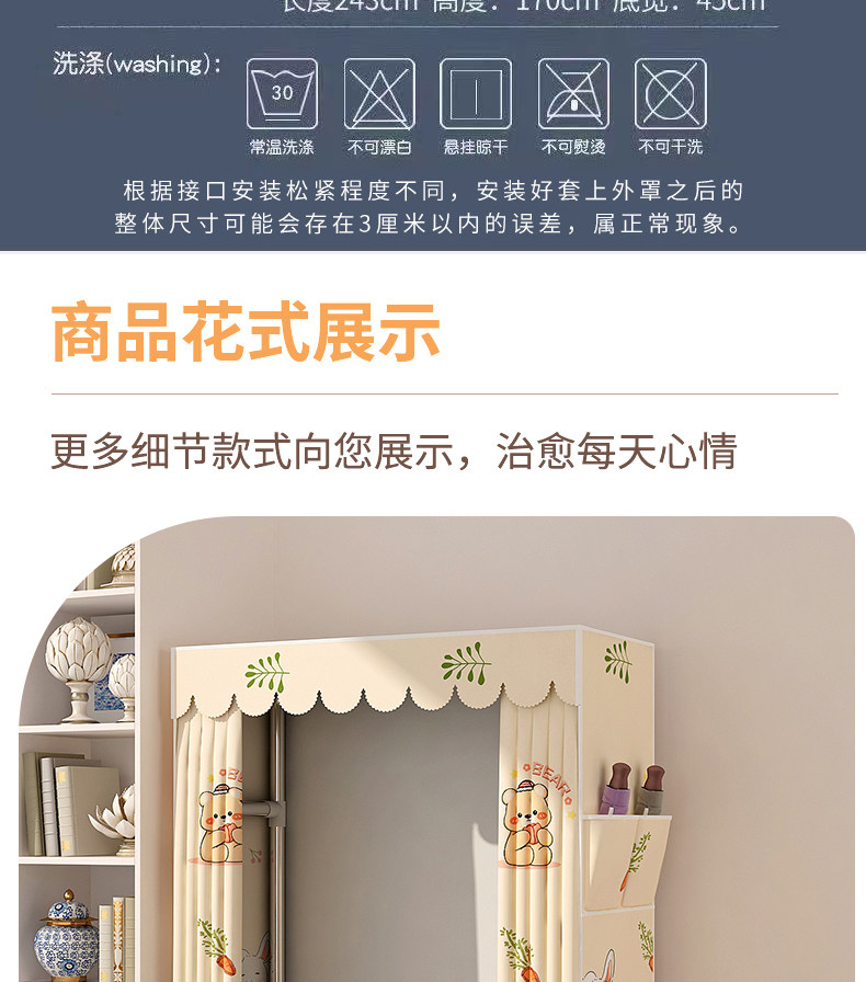 Простой гардероб для домашней спальни в аренду, прочный и долговечный тканевый шкаф, собранный на полностью закрытые молнии 𫔀 небольшой гардероб