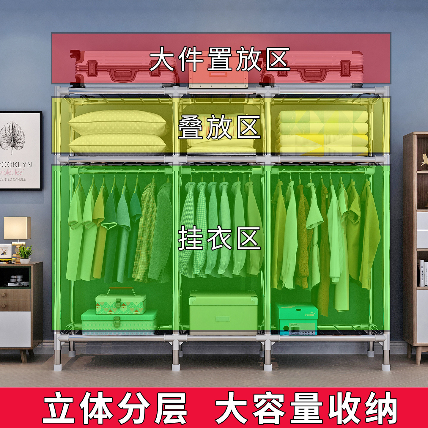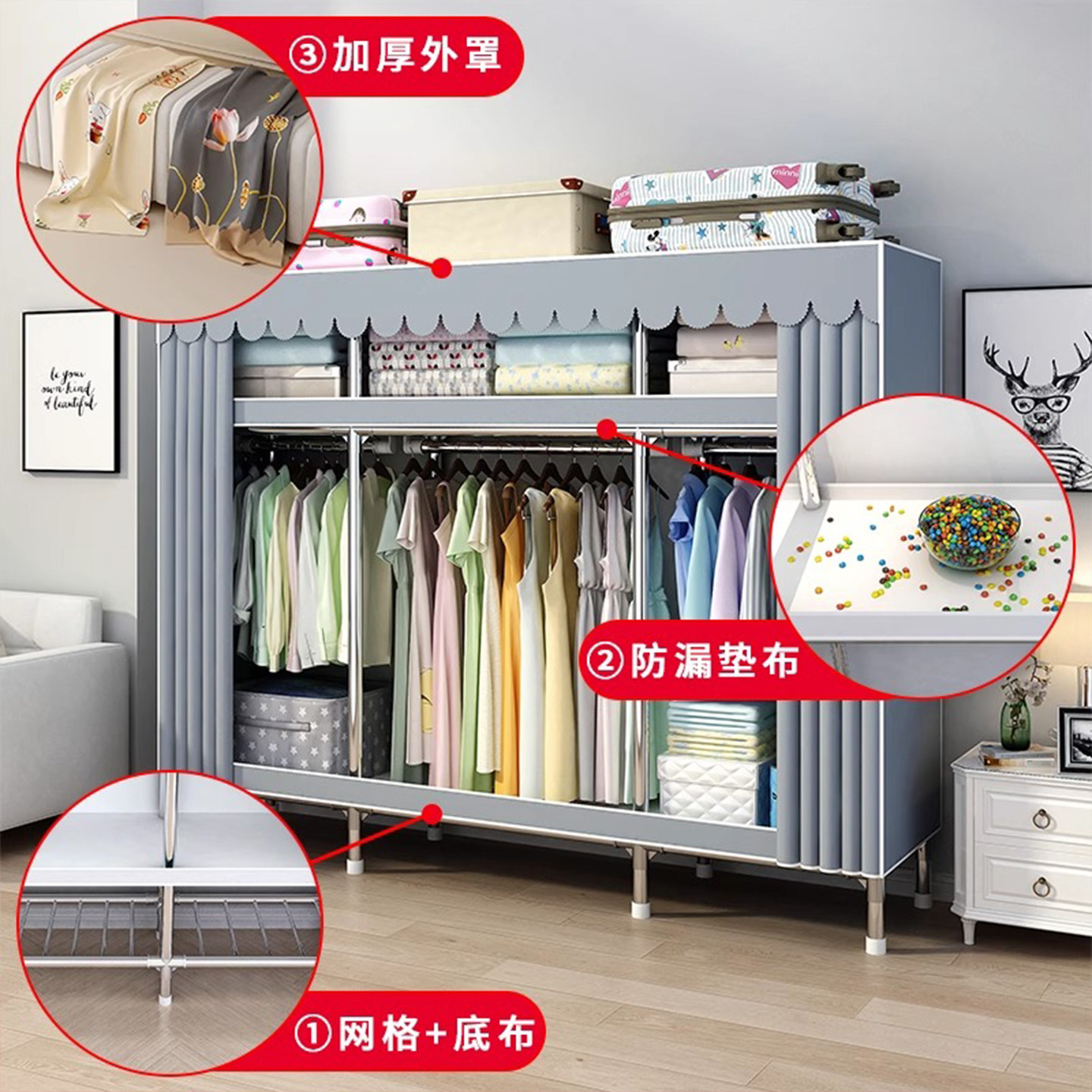 26 мм шкаф для спальни, бытовой прокат, простая сборка, тканевый шкаф, смелый и утолщенный большой артефакт для хранения в гардеробе