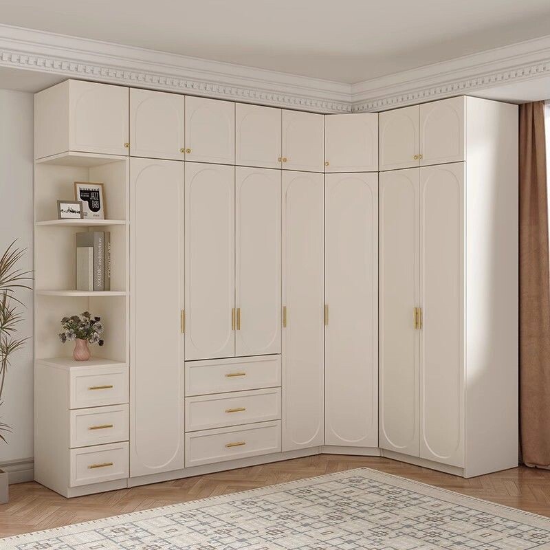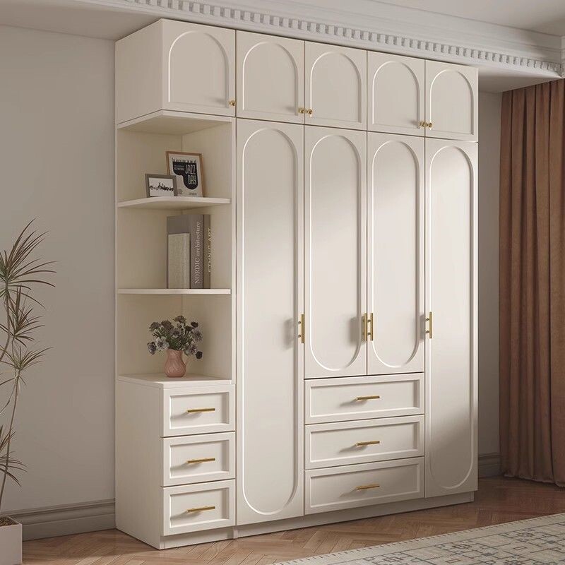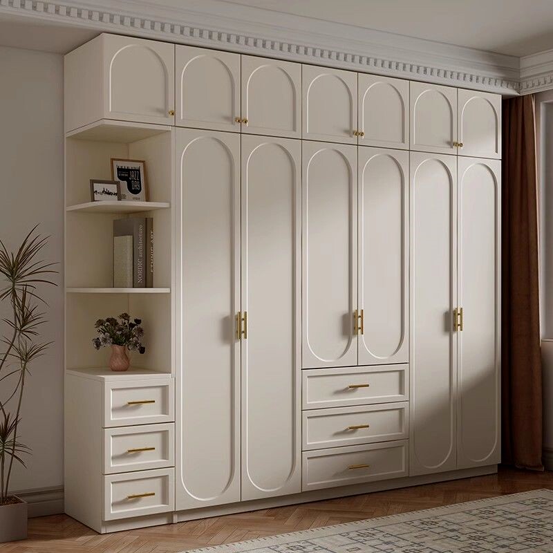 Французский сливочный сплошной деревянный шкаф гардеробная спальня небольшая квартира современная минималистская шкаф готовый гардероб