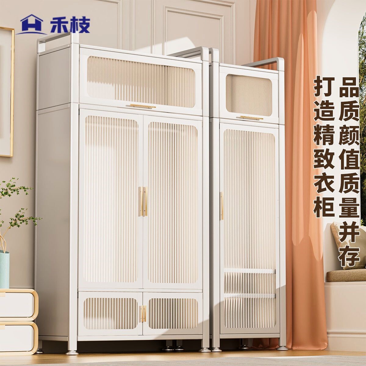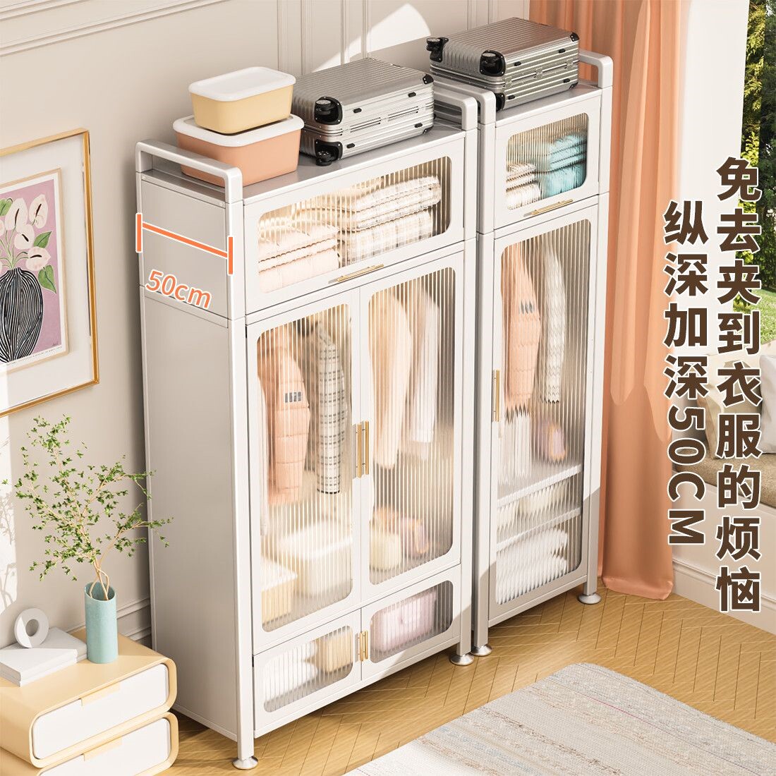 Кремовый железный гардероб домашний спальня стальная стеклянная дверь простые дети подвеса гардероб 50 Расширение нулевого формальдегида
