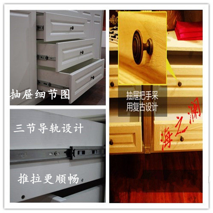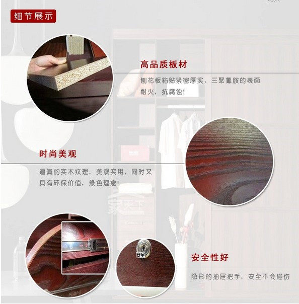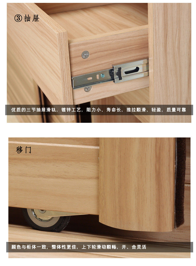 Шкаф может выбрать пластины или сплошную древесину. Тарелка может выбрать обычную плату E1 -классы или тарелку Dew Water River E0. Сплошная древесина может выбрать импортную кампорию России и импортированную резиновую древесину, импортируемую из Юго -Восточной Азии.