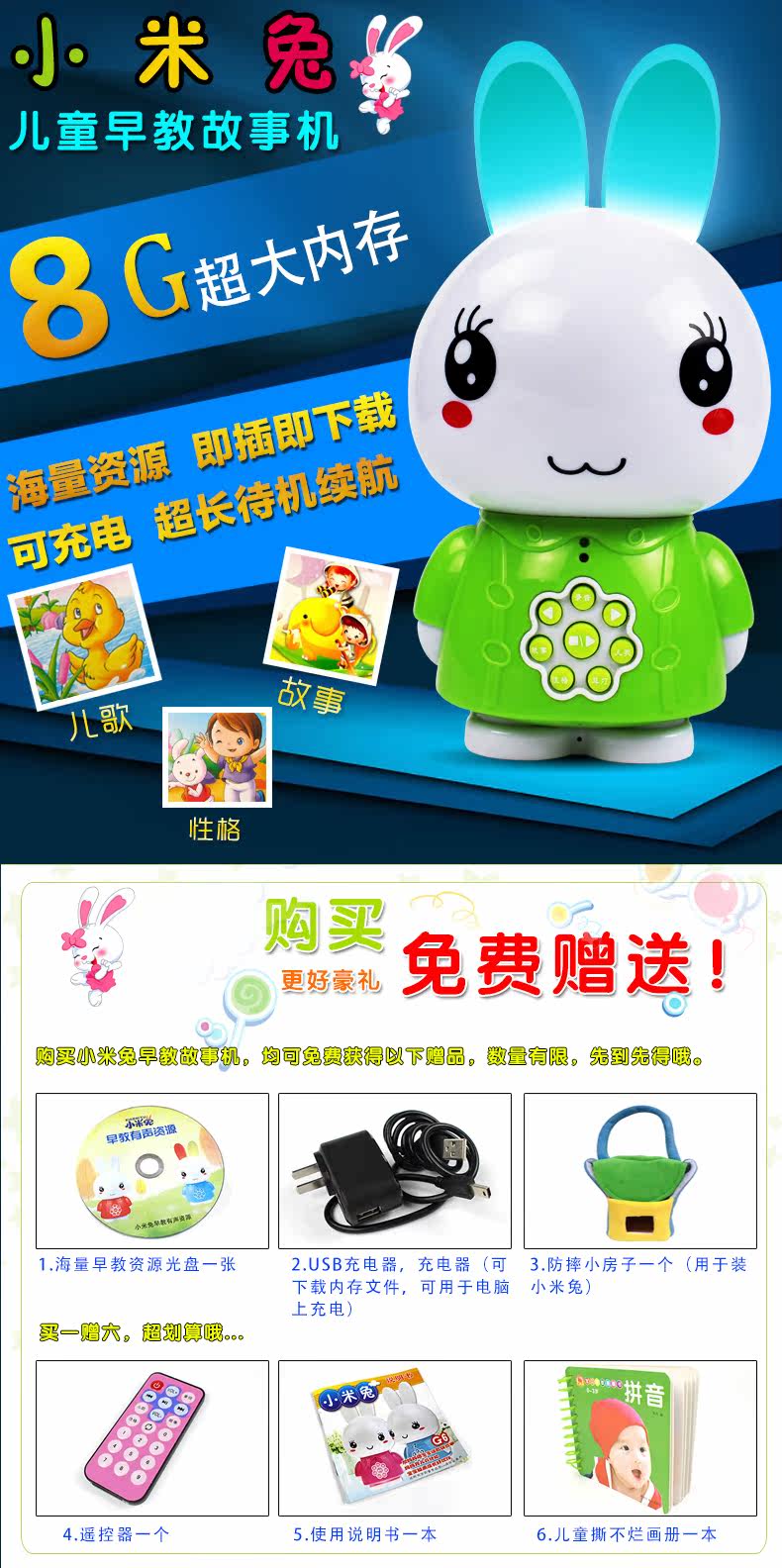 Вместительная и большая ударопрочная интеллектуальная игрушка, 8G, MP3, раннее развитие