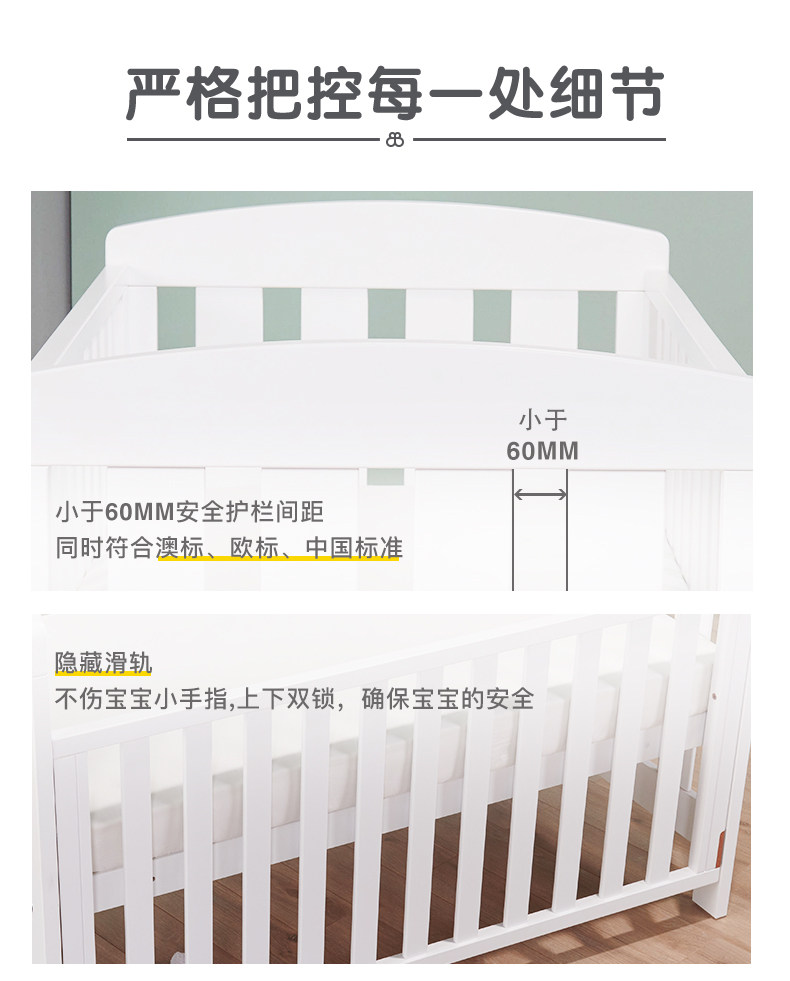 Универсальная детская кроватка из натурального дерева для новорожденных для приставной кровати, 1.3м