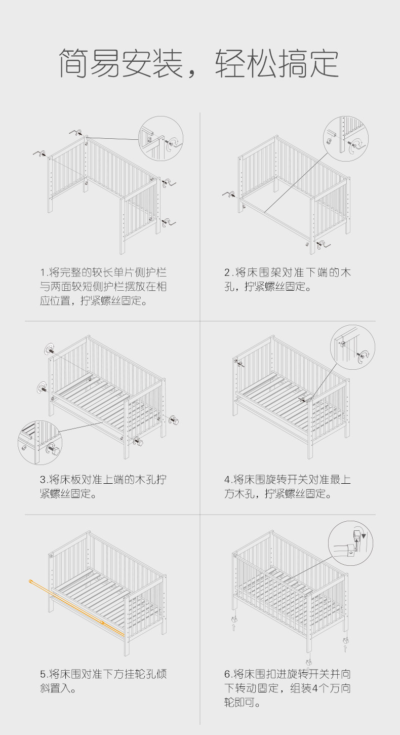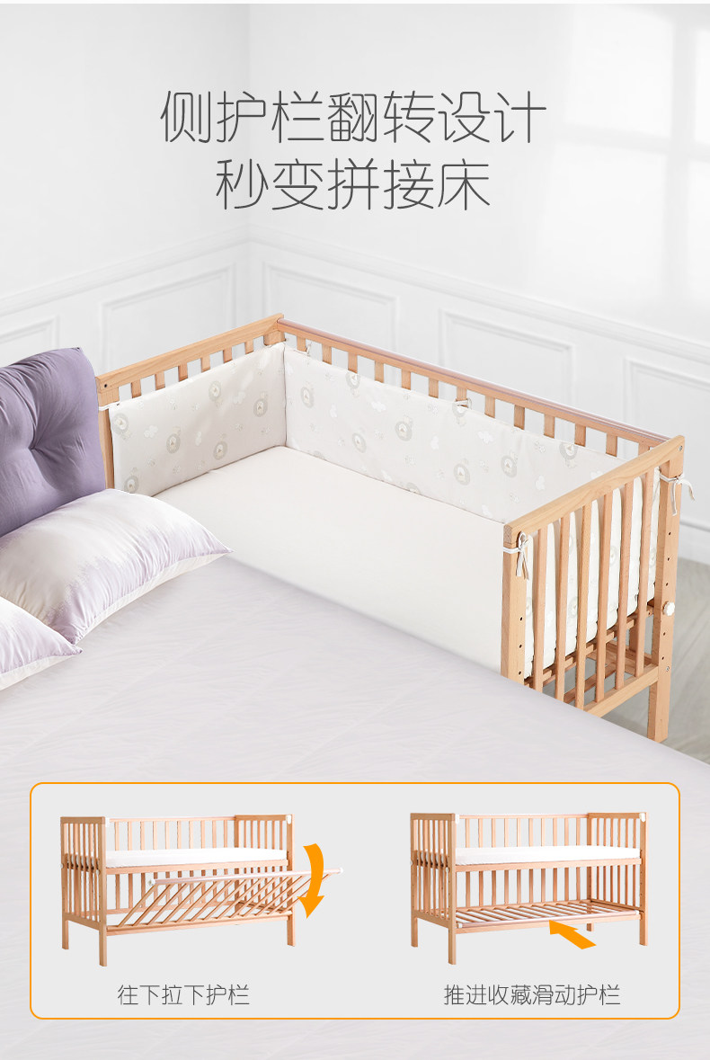 Детская универсальная кроватка из натурального дерева для приставной кровати для новорожденных