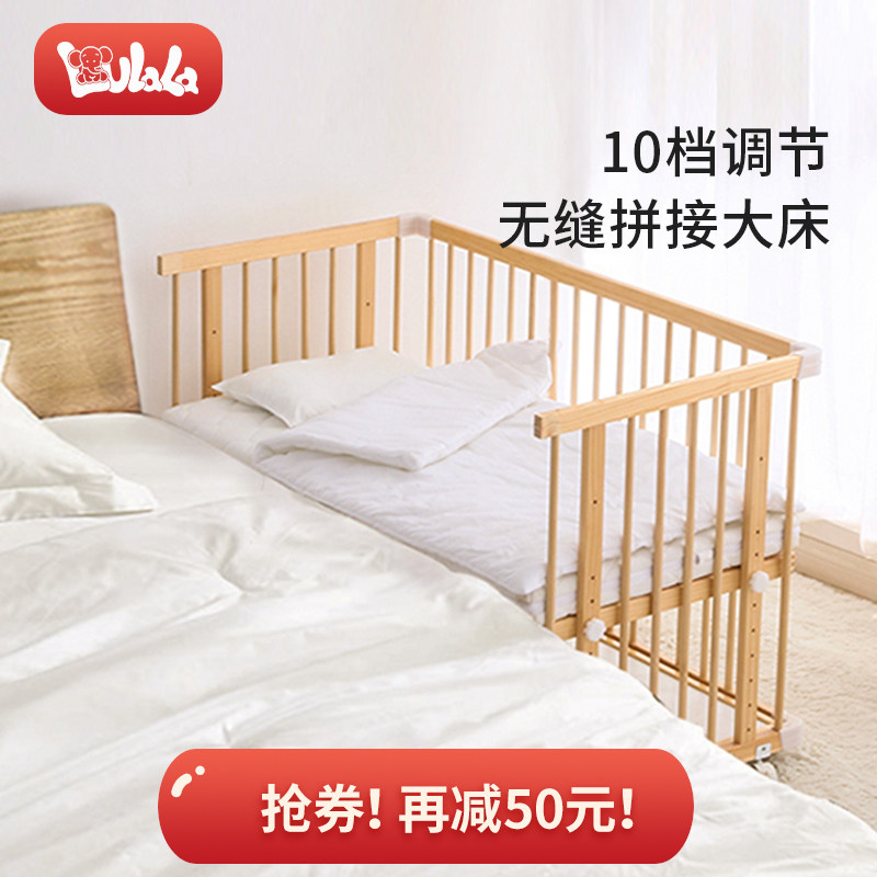 噜啦啦 Детская кроватка из натурального дерева для новорожденных для приставной кровати