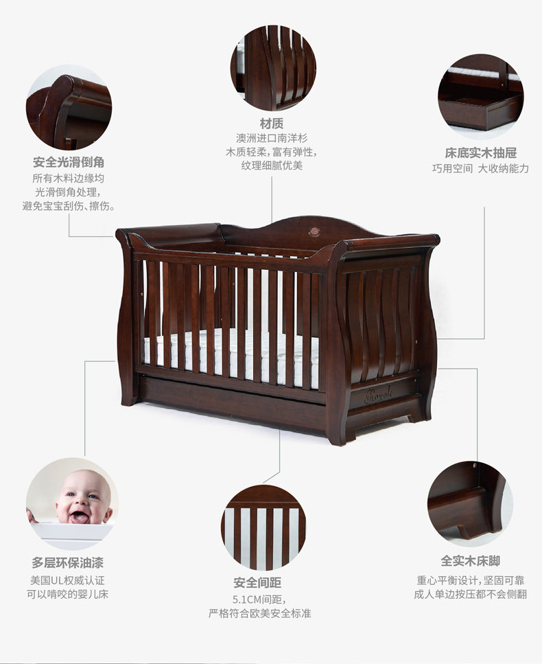 Универсальная импортная кроватка из натурального дерева для новорожденных для кровати