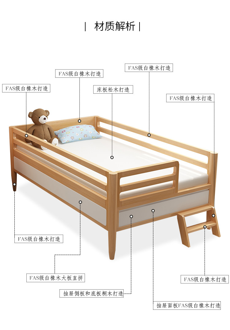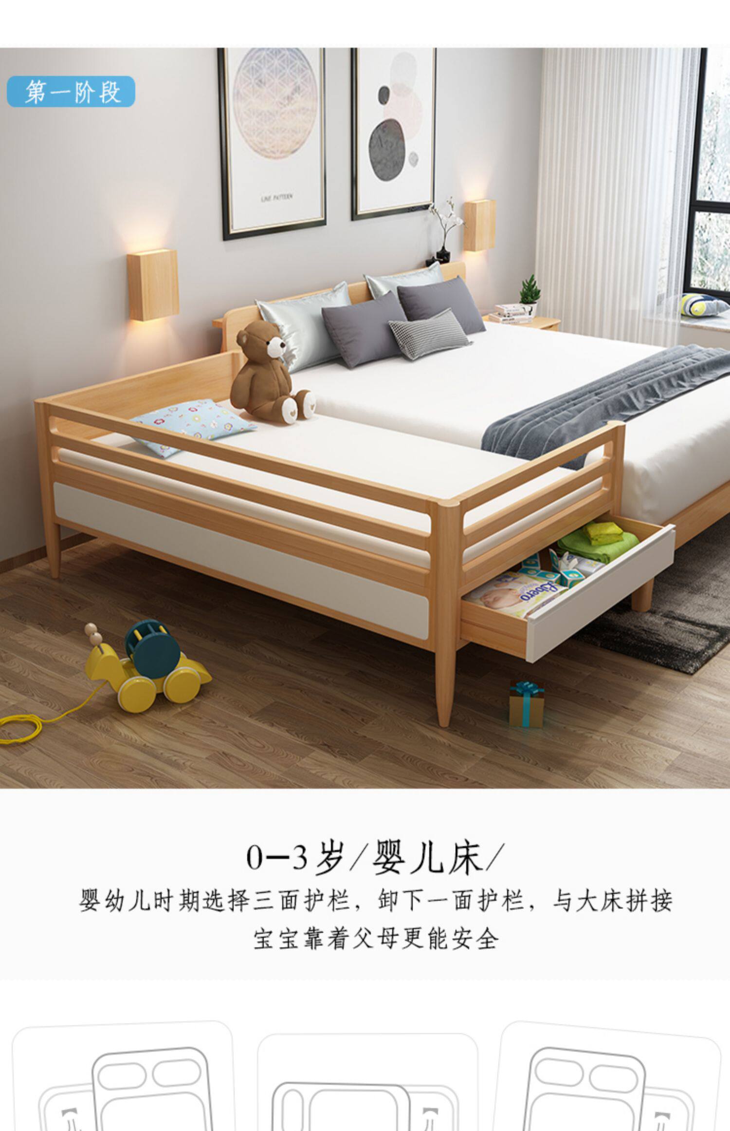 Кроватка из натурального дерева для приставной кровати для мальчиков, универсальное ограждение