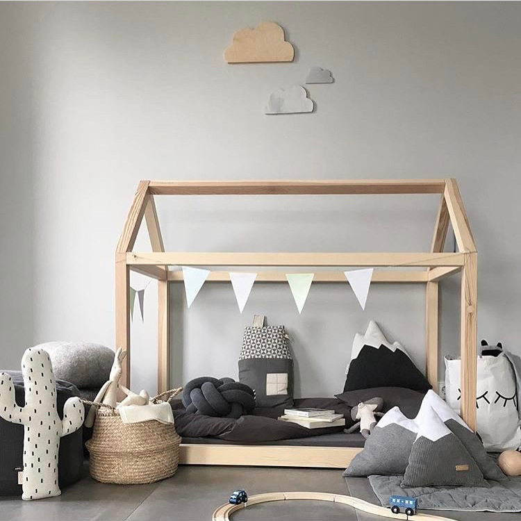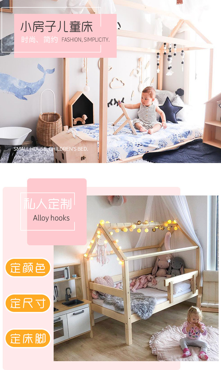 Nordic ins ins wind House Деревянная кровать детская комната сплошная древесная кровать маленькая принцесса шаг коврик ми с сетью красная кровать стреляет