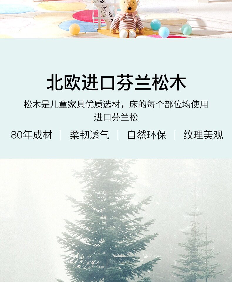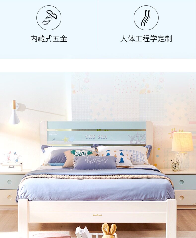 Экологичная кроватка из натурального дерева для мальчиков, 1.2м