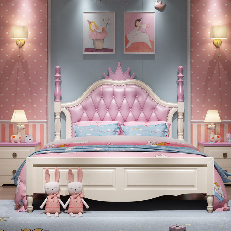 Кроватка из натурального дерева для принцессы, розовый замок для спальни, 1.2м